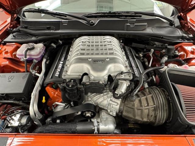 The now epic twin screw supercharger sits atop the 6.2 liter V8, rated at 717 horsepower and this one benefits from underdrive pulleys and larger injectors, professionally installed and tuned. It\'s backed by the Torqueflite 8HP90 8-speed automatic that routes power to the rear axle with limited slip and 2.62 gears.