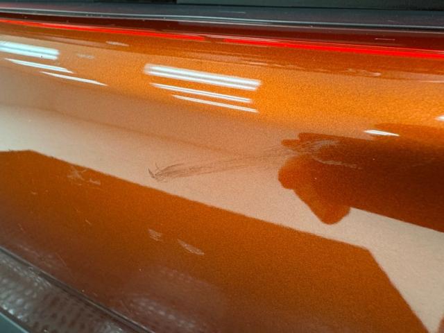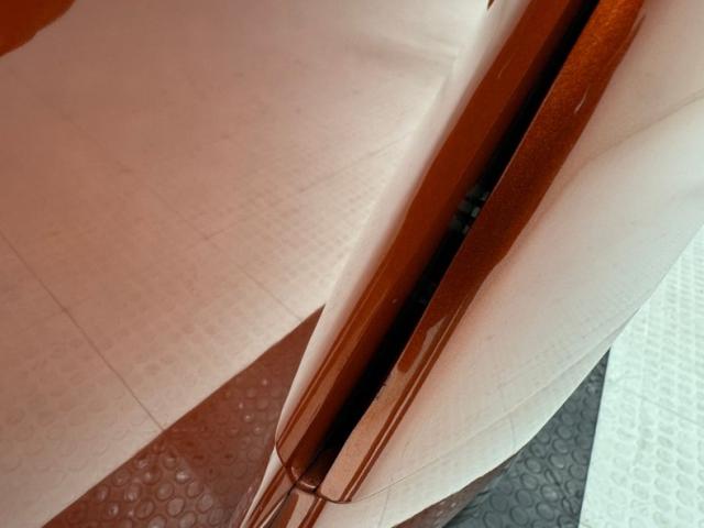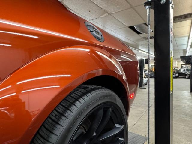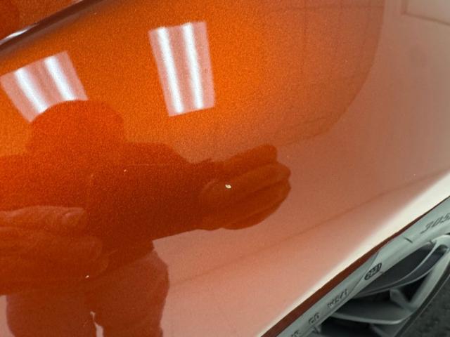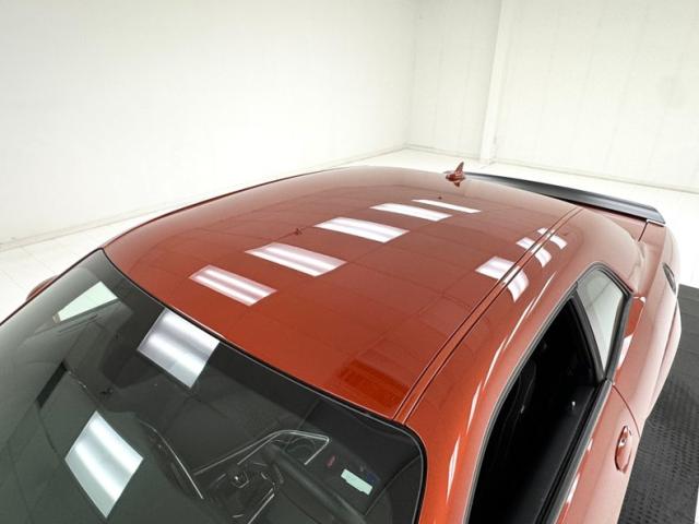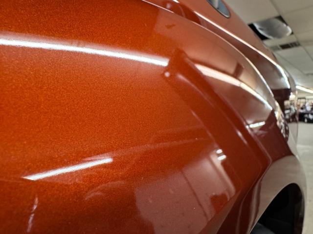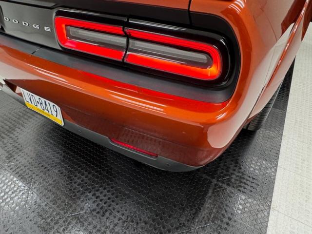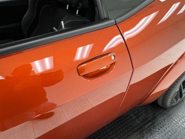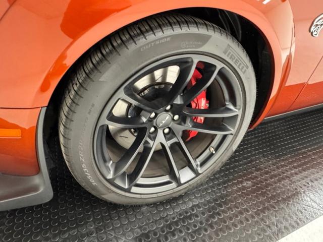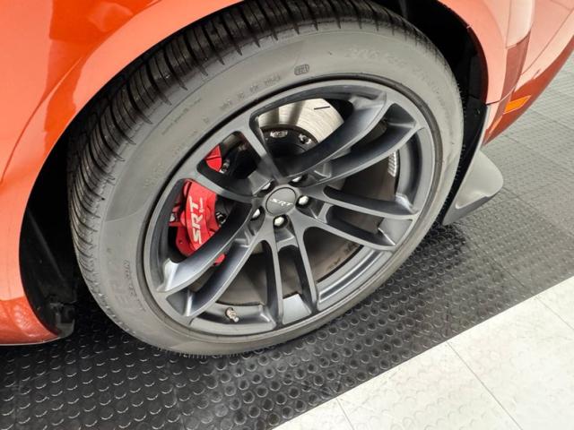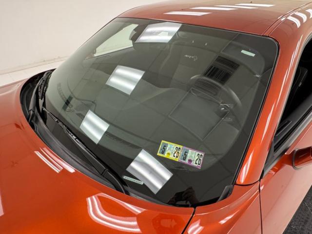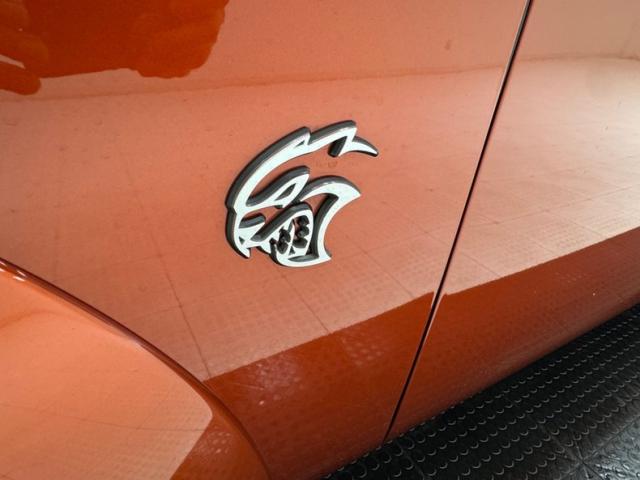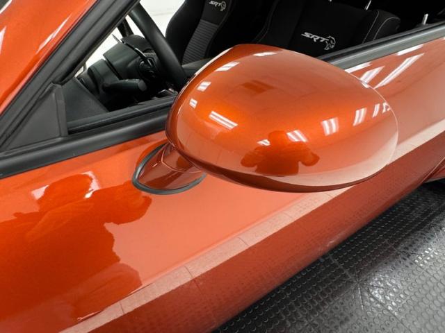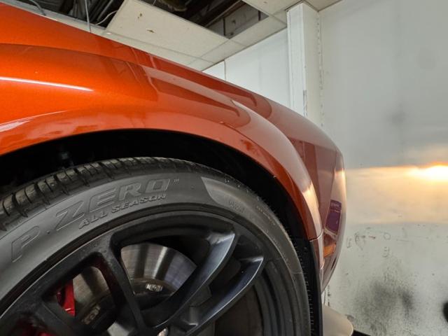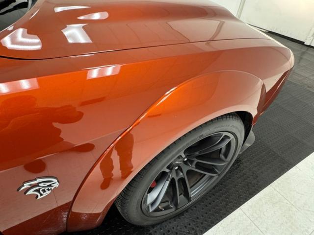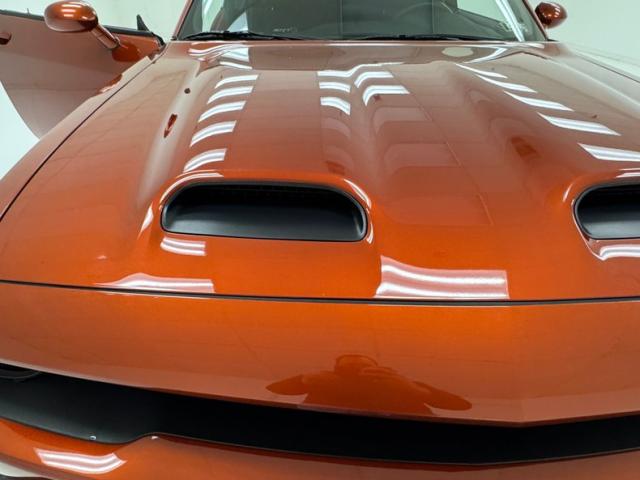 Leave it to Mopar to come up with a clever paint name and this one takes the cake.Sinamon Stick is the copper tone that covers this car reminding you of its devilish charm and bad boy attitude. Hellish features include an aggressive set of nostrils up front and the extended fender flares which accommodate the 305/35ZR20 tires, here with a mid 2021 date code and wrapped around satanically black wheels with spokes wide enough to highlight the red calipers behind. The Prince of Night would approve of the other contrasting black features that include the rear wing, tail light panel, rear valance and extended chin spoiler and this one lacks the yellow guards. The angry cat itself appears on each side of the car and imperfections include some scuffs, an area of the wheel opening where a tire made contact, chin scrapes with plastic shavings intact, and one arch cladding that has partially disengaged.