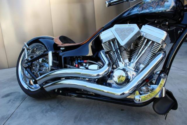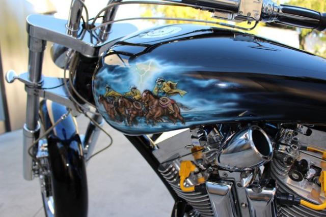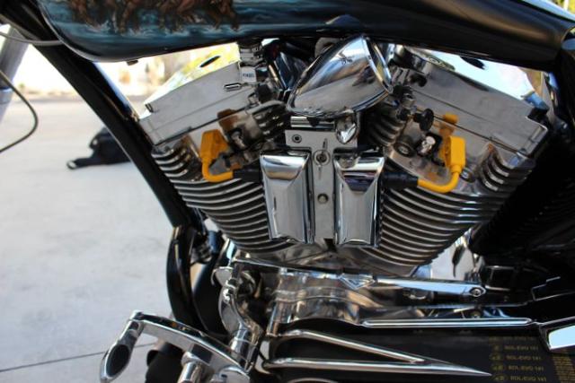 2008 Texas Ranger Tribute \'Nasty Attitude\' Chopper Softail Hidden Shocks 4 Back Bone Stretch 38 degree Neck Angle with 3 degree Trees 2 degree Extended Swing Arm Drop Seat Integrated Oil Tank ENGINE TP Total Performance Engineering 121 CID V-TWIN Bore 4.125 Stroke 4.5 CAM CRANE .650 Lift CARB Mikuni 48 mm HEADS Edelbrock PISTONS Moly VALVES Ferrea Stainless Steel EXHAUST Vance & Hines Special Right Side Drive Mount AIR CLEANER Super G Vortex K & N Element TRANSMISSION Baker RSD 6 Speed Polished w/ Hydraulic Clutch Actuator 1st 2.94 2nd 2.21 3rd 1.60 4th 1.23 5th 1.00 6th 0.86 PRIMARY DRIVE Chrome 3 Open Belt with Auto Clutch Custom Cover Belt Guard WHEELS / TIRES Front 21 x 3.15 Wheel 120/70 Degree Avon Tire Rear 10.5 x 18 Wheel 300/35 R 18 Avon Tire Custom Designed Matching Sprocket Built by Carolina Custom Products BRAKES Front Dual / Rear Single 11.5 Polished Stainless Steel Floating Rotors HHI Chrome & Polished Calipers HAND CONTROLS Joker With Rifle Levers FOOT CONTROLS Smoothies SEAT Custom Leather Please Note The Following **Vehicle Location is at our clients home and Not In Cadillac, Michigan. **We do have a showroom with about 25 cars that is by appointment only **Please Call First and talk to one of our reps at 231-468-2809 EXT 1 ** FREE Consignment Visit Our Site Today Easy To List Your Vehicle and Get it Sold in Record Time.