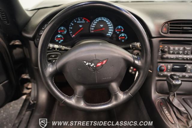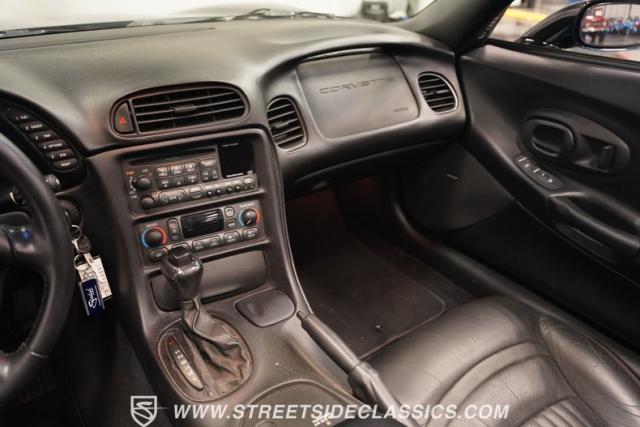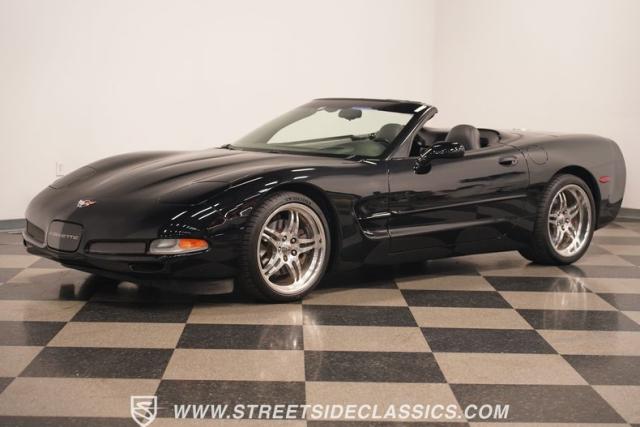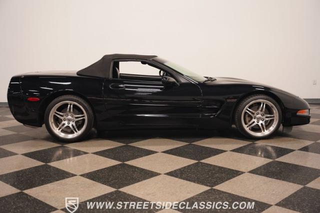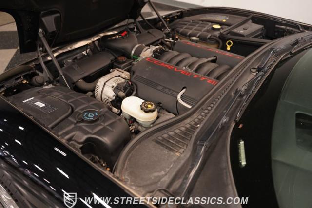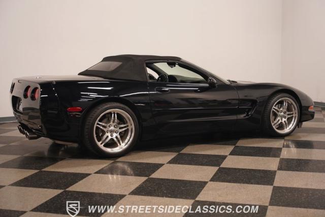 The Black paint of this 2000 Chevrolet Corvette Convertible shimmers with an understated intensity. Its sculpted lines exude timeless elegance and performance, free of any distracting stripes. This meticulously maintained Corvette has been carefully driven a mere 38,628 since it was new. Upgraded polished aluminum 19-inch custom wheels are wrapped in Michelin performance tires staggered 275/30ZR19 front and 305/30ZR19 rear, giving this Corvette a confident stance. The folding convertible top promises open-air thrills. Slide into the black leather bucket seats and discover a luxuriously appointed cabin. The interior exudes an air of refinement, with a Delco Electronics AM/FM CD stereo powered by Bose speakers, power steering, windows and locks, along with ice-cold air conditioning that ensure a comfortable ride, no matter the destination.