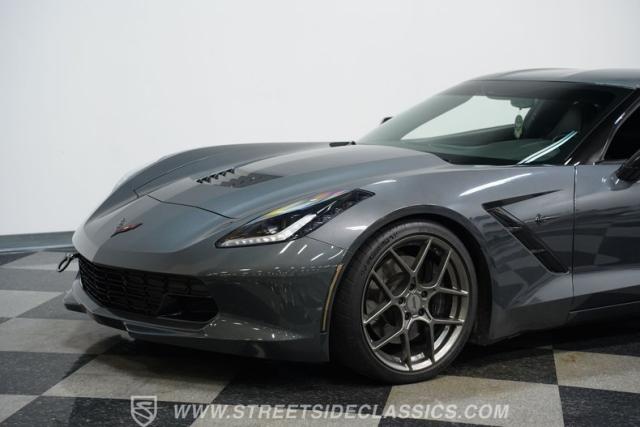 Beneath the sculpted hood lies the heart of this beast-a 6.2L LT1 V8 paired with an aftermarket procharger for exhilarating performance. The 8-speed automatic transmission delivers seamless shifts, while Weapon X valve covers hint at the performance potential within. With 28,640 actual miles, this Corvette\'s drivetrain is as clean as it is potent, and power is put to the pavement through staggered American Racing wheels wrapped in high-performance tires. Power disc brakes all around, factory suspension, and power steering ensure this Z51 is as agile as it is fast, making every drive an event.