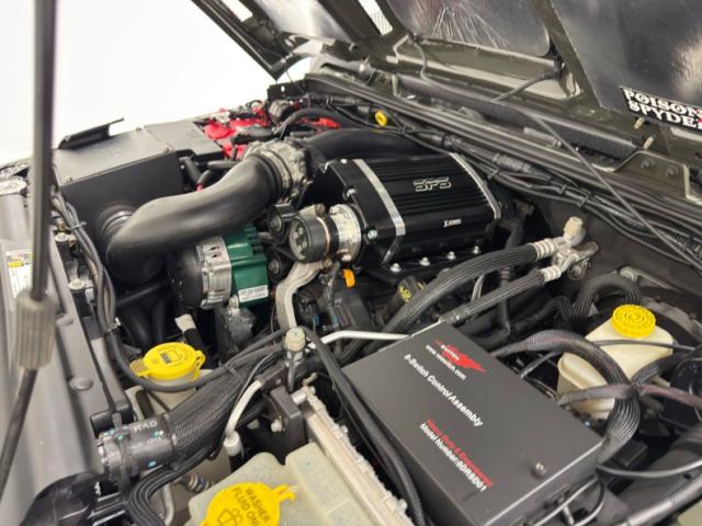 The 3.6 liter 24 valve VVT six cylinder is enhanced with an SPS supercharger and mated to a W5A580 5-speed automatic with the ability to send power to both axles housing Dana 44\'s with Trac-Lok. This big rig is equipped with Wilwood power disc brakes on all four wheels.