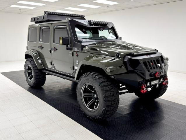 Built for show, but with plenty of go, this impressive Jeep is a stand out in a world of custom Jeeps. Someone opened up a bank vault and checked all the boxes in the accessory catalog and now we have a low mileage, all American, butt kicking example of non toxic masculinity ready for its next captain Who\'s ready to wrangle this Sahara?