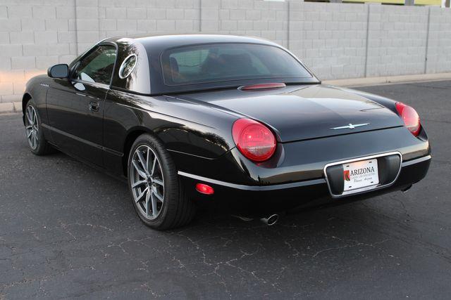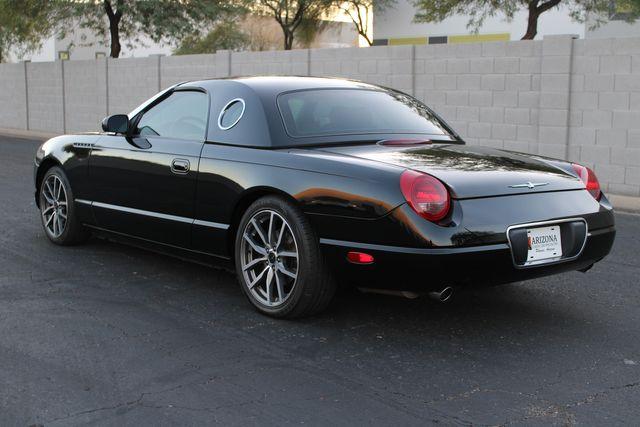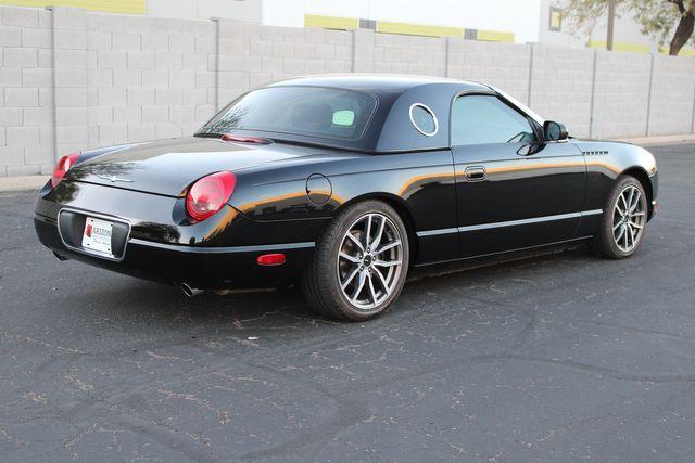 Step into the realm of timeless elegance and raw power with this immaculate 2002 Ford Thunderbird Deluxe, a true modern classic that merges the nostalgia of yesteryear with the advancements of the new millennium. With an astonishingly low mileage of just 8,297 miles, this Thunderbird is not just a car; it\'s a slice of automotive history that\'s as fresh and alluring as the day it rolled off the assembly line. Draped in a sleek, pitch-black exterior, this Thunderbird commands attention and conveys a sense of sophistication that is second to none. The deep, lustrous black paint reflects the world around it with a mirror-like finish, ensuring that this car won\'t just turn headsit will stop them in their tracks. Slip inside, and you\'ll find yourself enveloped in a world of luxurious black leather that speaks volumes of the car\'s well-preserved interior. The seats cradle you in comfort, offering a perfect vantage point to the open road ahead. Every inch of the cabin has been meticulously designed to provide an experience that is both indulgent and exhilarating, making every journey an occasion to be savored. At the heart of this automotive masterpiece lies a robust 3.9L V8 engine, delivering a potent 252 horsepower and 267 ft. lbs. of torque. This powerplant is not just about performance; it\'s about delivering a smooth, responsive drive that\'s as thrilling on a spirited sprint as it is on a leisurely cruise. Coupled with a seamless 5-Speed Automatic transmission, this Thunderbird offers an effortless driving experience that is both engaging and relaxing. This 2002 Ford Thunderbird Deluxe comes equipped with a suite of manufacturer options and packages that enhance every aspect of the drive. From the moment you ignite the engine, you\'ll feel the perfect blend of modern convenience and classic charm that this Thunderbird has to offer. Imagine the envious glances as you glide down the boulevard, the V8\'s gentle rumble a subtle reminder of the power at your disposal. Picture the admiring nods at car meets, where enthusiasts recognize the rarity of such a low-mileage gem. Envision the joy of weekend getaways, the open road beckoning, with the promise of making new memories in a car that\'s as much a joy to drive as it is to behold. This 2002 Ford Thunderbird Deluxe isn\'t just a car; it\'s a statement. It\'s a testament to the idea that some things are built to last, to be cherished, and to be enjoyed for generations. It\'s an opportunity to own a piece of automotive artistry that is as relevant today as it was when it first captured the hearts of car lovers around the world. Don\'t let this chance slip through your fingers. Embrace the opportunity to become the custodian of a vehicle that will continue to appreciate in both value and esteem. The open road awaits, and this Thunderbird is ready to soar once more. Contact us today to experience the magic of this stunning 2002 Ford Thunderbird Deluxe, and prepare to fall in love with driving all over again. Don\'t let this one slip away... Call or text anytime 602-513-3298