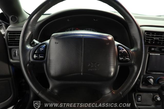 Inside, we find a comfortable black leather interior, highlighted by a supportive power-adjustable driver\'s seat, which sits in front of a two-spoke padded steering wheel with radio and HVAC thumb controls. An analog gauge cluster centers on a 7,000-rpm tach and a 150-mph speedometer, while the factory Monsoon stereo is included in the sale, this car has been upgraded with a trick Pioneer AM/FM/CD/AUX/Satellite touchscreen that also offers Bluetooth connectivity. A roomy center console armrest provides additional storage, and the center-mounted cup holder is actually useful in a car like this with an automatic transmission. The rear bucket seats don\'t offer much for full-sized adults, but they can be folded down to provide plenty of cargo space. Power windows, locks, mirrors, cruise control, air-conditioning, and airbags round out this Camaro\'s list of modern amenities.
