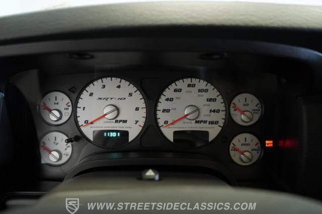 Step inside and discover a dark slate grey leather interior that perfectly blends comfort and sport. The 40/20/40 split bench with a fold-down console offers flexible seating, while SRT-10 bucket seats with suede inserts cradle you in style. White-face analog gauges and an A-pillar oil temperature gauge keep you informed, while a Hurst shifter, dual-zone climate control, and Infinity audio system with CD changer ensure every drive is as enjoyable as it is exhilarating. Power windows, mirrors, locks, and a power driver seat add convenience to this high-performance package.