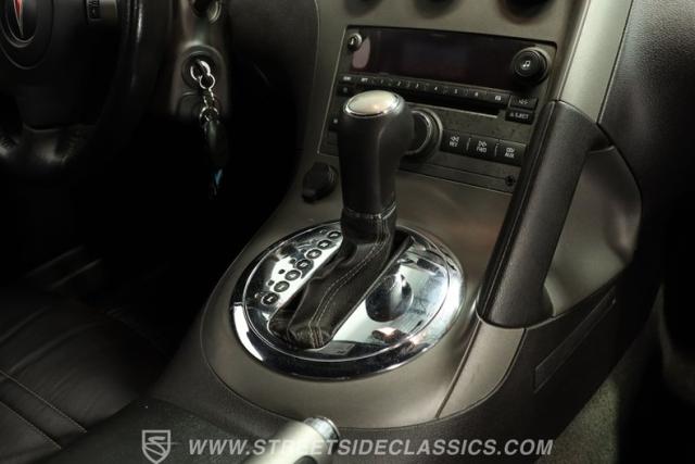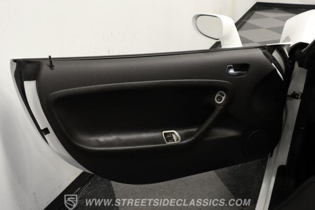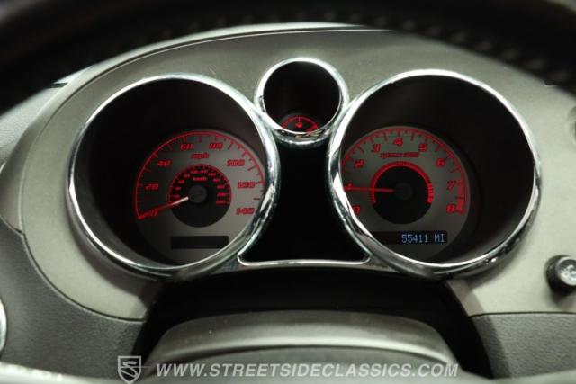 Inside, we find a sporty and driver-centric Ebony leather interior. Dual bucket seats offer a perfect balance of comfort and support. A three-spoke power-assisted steering wheel with thumb controls sits ahead of a three-pod gauge cluster where a small center fuel gauge is bookended by a big 140-mph speedometer and an 8,000-rpm tachometer. The wraparound dashboard is home to simple HVAC controls, along with an AM/FM/CD player handling soundtrack duties. Power windows, mirrors, and locks, combined with cruise control and air conditioning, offer all the modern amenities anyone could want in a late-model sports car.
