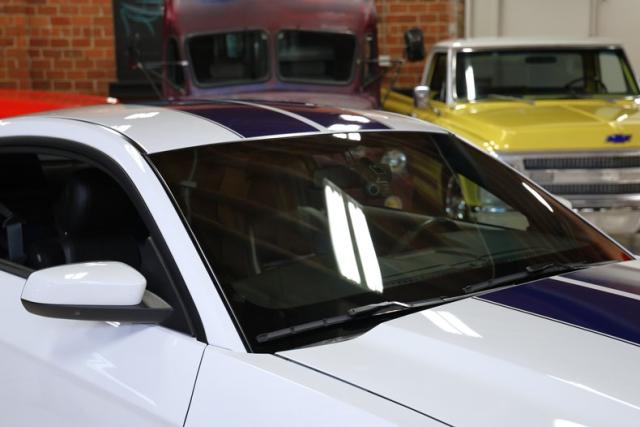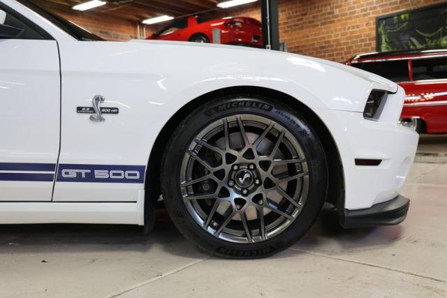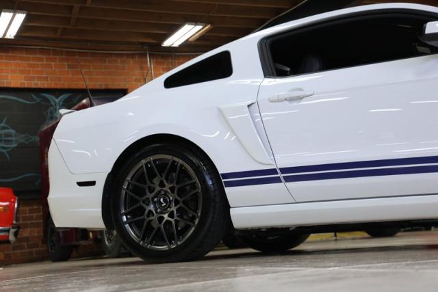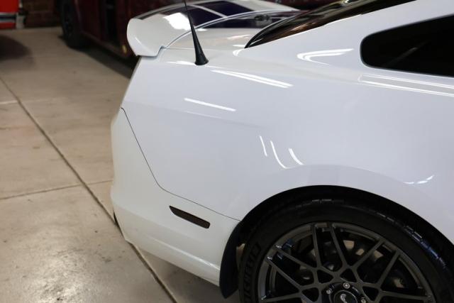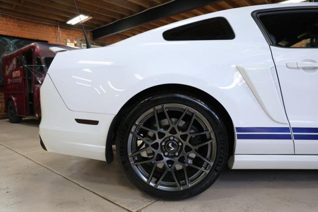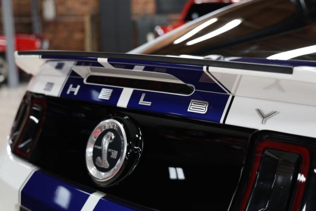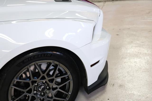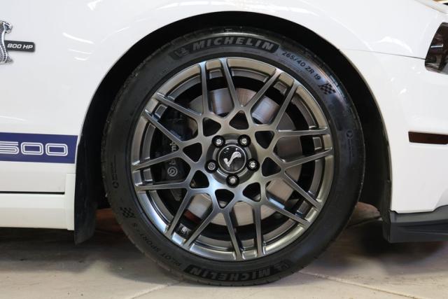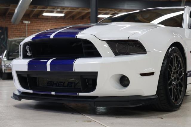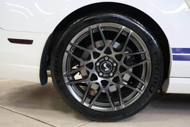 Under the hood sits the intercooled 5.8L \"Trinity\" 351ci V8, force-fed and tuned by HPJ, now hammering out 691 horsepower to the rear wheels and 703 lb-ft of torque. A JLT cold air intake, Kooks headers, full stainless exhaust, Kooks mufflers, and tips let it breathe and scream the way a Shelby should. This isn\'t theoretical power - it\'s violent, tire-wrinkling reality.