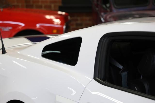 Finished in Oxford White with blue racing stripes, it carries that classic Shelby DNA with modern brutality. Inside, it\'s black with blue inserts, and the available Recaro seats clamp you in without punishing you. The SVT cluster delivers over-rev warnings and programmable shift lights - subtle reminders that this car lives happiest near redline.