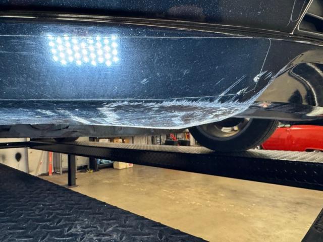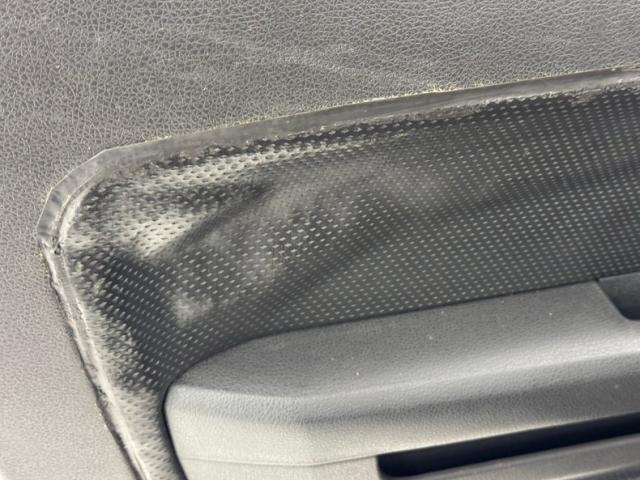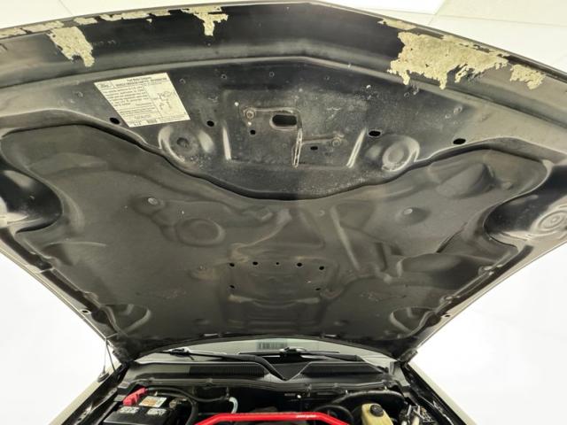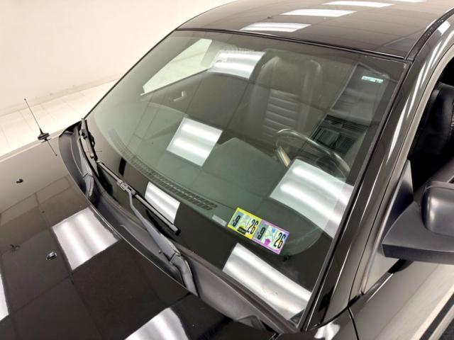 Standard black plastic door panels contain a perforated leather insert that is known in this generation to come loose, even on low mileage cars, and this is what we have on both sides on otherwise clean door panels. Black buckets seats occupy the front with some very slight wear and compression on the driver\'s side and good condition is found on the passenger and rear 2+2 seats. A three spoke steering wheel fronts a two gauge instrument cluster with condition needles grouped together in the middle. Black plastic alternates with the aluminum panel on the dash for an attractive look, and the center stack houses a touch screen for camera, AM/FM/CD functions, and other information, over the A/C dials. In the console, we have a black topped shifter in a leather boot, ahead of requisite cupholders over black carpet and all are in very nice condition. A foam backed headliner also presents nicely and the trunk is finished with gray mats and houses the Shaker speakers.
