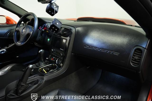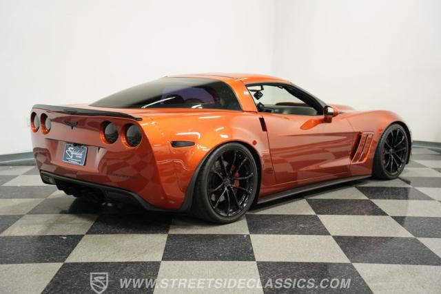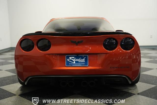 American muscle never looked so good as on this 2006 Chevrolet Corvette Z06 Tribute in Atomic Orange. The aggressive stance comes from Z06 wide body panels expertly grafted onto what was once a base model C6. A sleek MCM carbon fiber hood adds menacing character, while the upgraded headlights offer a C7-inspired appearance. Rolling on staggered C7 Grand Sport cup wheels 19\" up front and 20\" in back wrapped in 285/30ZR19 front and 335/25R20 rear tires, this Corvette hugs the asphalt.
