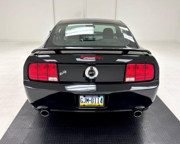 Ford went all out for the design, reminiscent of the early models with beefier proportions and a more refined line aspect. The front of the car is more \"aero\" designed, and has an integrated body matching bumper, blackened honeycomb grille with inboard fog lights, and the ubiquitous galloping pony. All these styling cues can be seen from way back in 1965 with its grille shape, and rear tail light configuration. More retro throwback appears with the triangle shaped quarter glass and small pedestal mounted rear spoiler. Black is used generously here covering everything from the door handles to the rear spoiler to the side mirrors which take on a matte plastic finish. 17-inch wheels retain their original tires and offer the only contrast to the black other than the GT emblem on the side. There are several scuffs and a small dent over the passenger\'s rear wheel opening which are the only exterior imperfections we find.