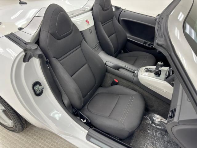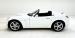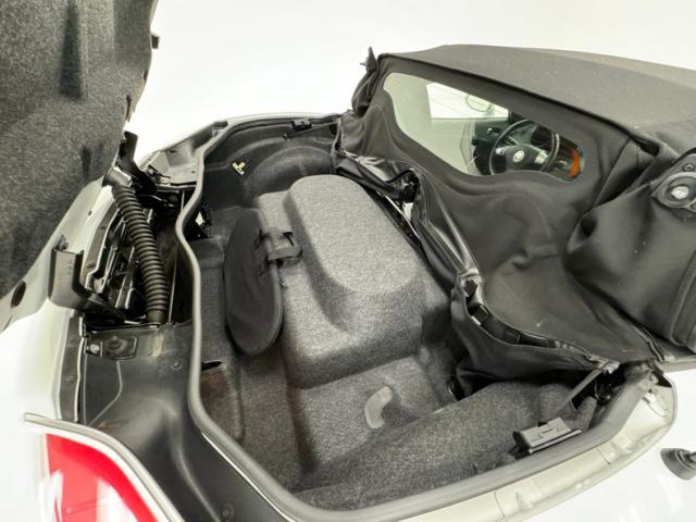 Our car is finished in Polar White which does a great job of blending with the chrome accents that include the grille trim, hood vents, 18-inch wheels, window frame, and door handles, while contrasting perfectly with the black canvas top, tires, and grille inserts. A reviewer described the front as a boxer with his chin out and that\'s a great visual, as the headlights are set back while the lower valance leads the car. The long nose, compact cab, and short, rounded tail is classic sportscar and the side fender vents and accompanying body contouring add aggression and style. Fairings behind the seats borrow from far more exotic rides and the single reverse light low on the rear valance is something else you might see on high end hyper cars. The canvas top is in great condition and has a glass window between extended buttresses that flank the fairings. Imperfections are limited to a touched up scratch and some minor scraping on the chin.