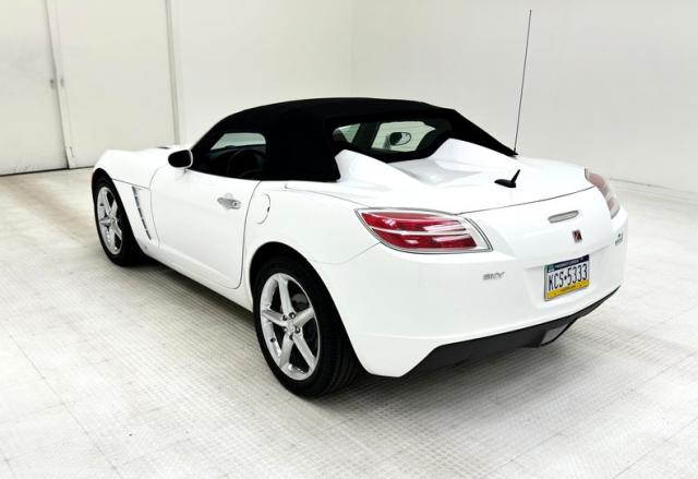 For consignment, a 2008 Saturn Sky convertible with a title verified 19,456 actual miles. It\'s had just two owners but gained the attention of many more people as our consignor tells us the questions come fast when people see it on the street. This was a beloved gift to the consignor\'s self in celebration of retirement and as a result, was garage kept and well maintained. It will come with a car cover and windscreen.