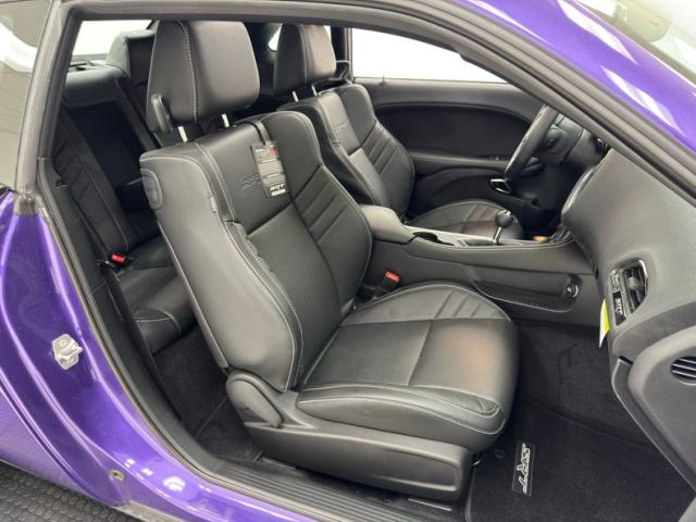 Iconic design cues from the 70\'s lend themselves to this bigger bodied version which retains the mean stare which is now augmented by enormous upper and lower intakes, also known as grilles on mere mortal cars. The headlight scoop takes on incoming air and the hood scoop captures any that pass over the nose. Heat extractors on a matte black hood keep things coolish. Black is a great companion to the Plum Crazy Pearl Coat and included on the 20-inch wheels carrying 275/40ZR20\'s right from the assembly plant. The gas cap, rear wing, rear valance, latch panel trim, and front air dam, all sinister black. We\'ve got a sunroof up above and a cool, shark fin antenna. This low mileage dream is not without some minor imperfections including a chin scrape, a chip in the paint, a small ding, and a scuff on the bumper cover.