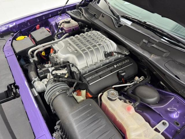 Perhaps one of the most written about engines in modern automotive journalism, here we have the 6.2 liter supercharged Hemi V8 putting out 707 horsepower and mated to a Tremec TR6060 6-speed manual transmission that routes power the rear wheels with 3.70 gears and limited slip. Naturally, power disc brakes at all four wheels and Brembos are called into action. The waffle topped supercharger in the bay is well known by now and the rest of the components fit like puzzle pieces with very little room to spare.