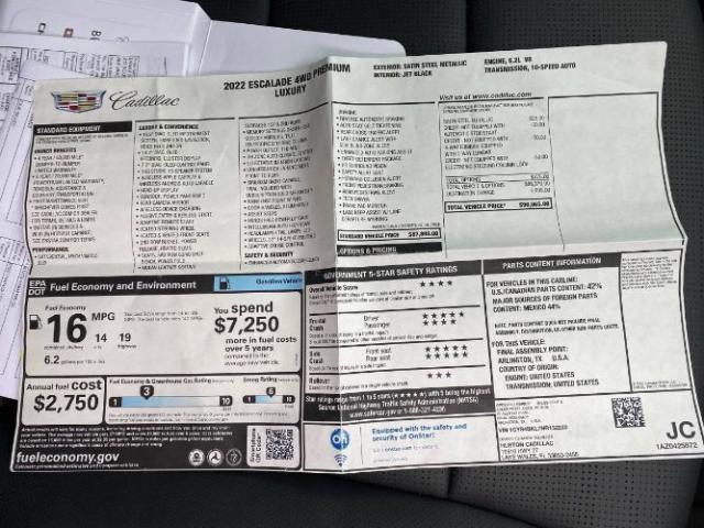 2022 Cadillac Escalade premium pkg 2100mi LIKE NEW Exactly as sticker shows (pictured) truck is like new with 2100 miles. Please Note The Following **Vehicle Location is at our clients home and Not In Cadillac, Michigan. **We do have a showroom with about 25 cars that is by appointment only **Please Call First and talk to one of our reps at 231-468-2809 EXT 1 ** FREE Consignment Visit Our Site Today Easy To List Your Vehicle and Get it Sold in Record Time.