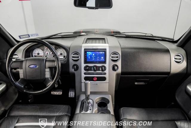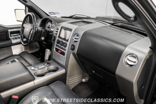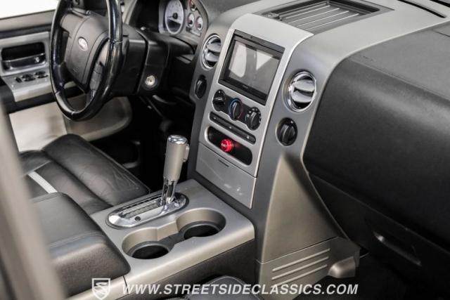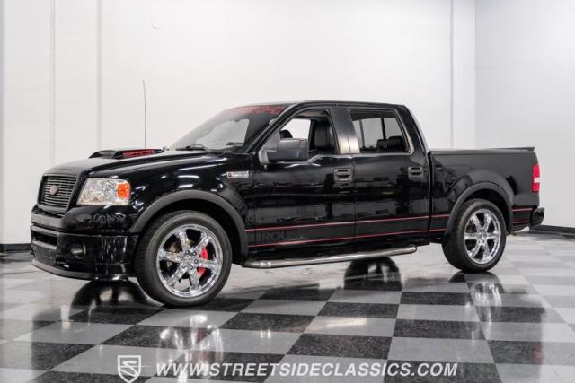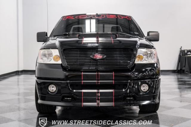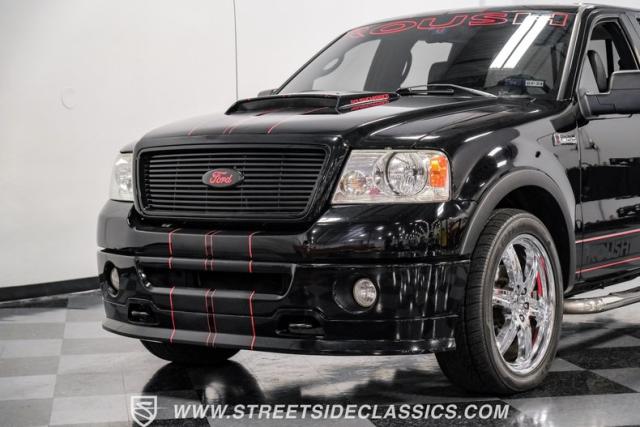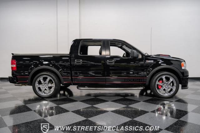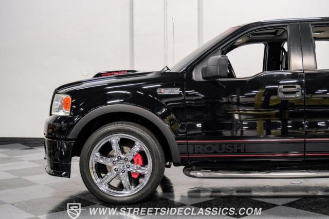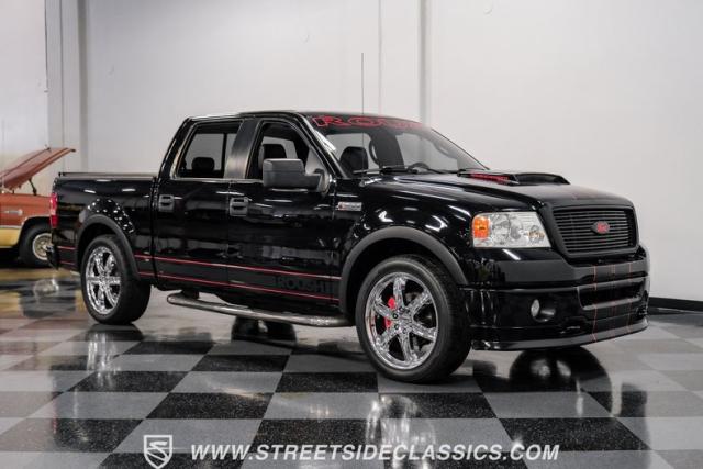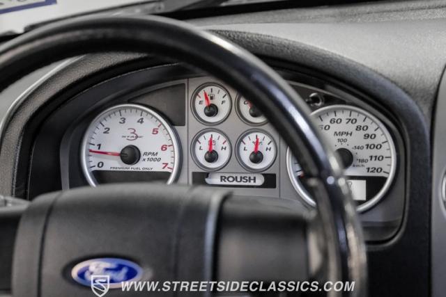 Sink into the black leather bucket seats and feel the supportive comfort they provide. The central console adds a sporty touch to the cabin. Roush badging and accents throughout are constant reminders of this truck\'s unique pedigree, while the upgraded Pioneer touchscreen radio offers a blend of classic style and modern technology. Enjoy year-round adventures with air conditioning, and experience effortless handling thanks to power steering. This truck\'s history comes alive with the original brochures, window sticker, receipts, owner\'s manual, and Roush window sticker.