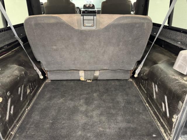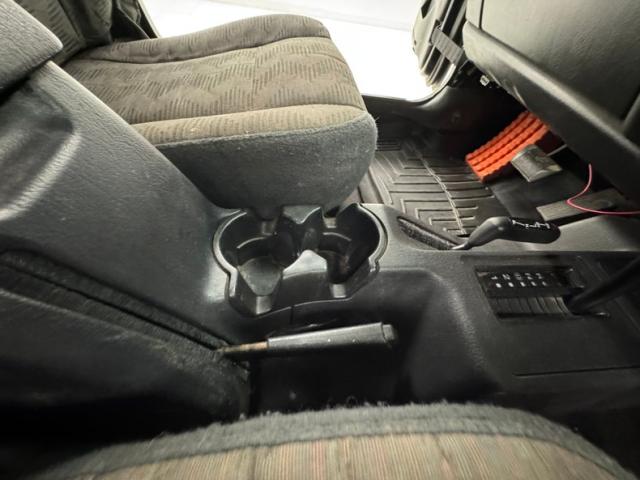 Gray formed plastic door panels include storage bins with drainage holes and plastic hardware and both are in decent condition. Our driver\'s seat of dark gray cloth shows a touch of patina and use while the rear bench and passenger seat are well preserved. The robust steering wheel holds an airbag and fronts a basic instrument cluster behind plexi with a green digital readout augmented by a dual gauge package on top of the dashboard. Below it, the AM/FM/CD radio, A/C dials, and some auxiliary switches. In the center console, a T-shaped automatic shifter and requisite cupholders over black carpet and fitted weather mats. The cargo area shows proper use and a floor covered with black carpet.
