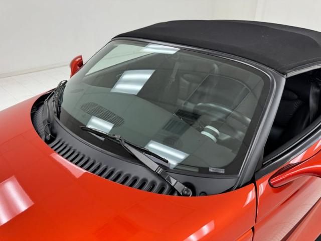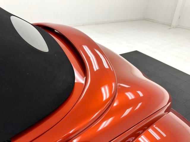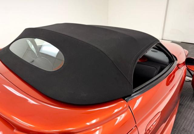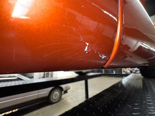 Prowler Orange Metallic Pearlcoat has been compared to chili oil and if you google images, that comes close to describing this deep translucent hue of burnt orange. The narrow eyed Prowler has open front wheels, part of its exotic offering, with body colored fenders that turn with the wheels. Here\'s a front end with custom headlights, grille, and marker housing as the bumpers have been deleted allowing full view of the chrome suspension. Staggered size chrome 5 spoke wheels present a raked stance on a level ride and original tires. When you follow this car and its super wide back end, you\'ll note custom stainless filler plates, plate holder, and exhaust along with rear bumper delete, all below a custom wing molded into the decklid with integrated third brake light. The canvas top, wheels, and paint are excellent on the car and imperfections we find include various spots of cracking paint on lower cladding, chips on the rear fenders where gravel guards are normally found, a paint line edge on the door sill, and chin scrapes.