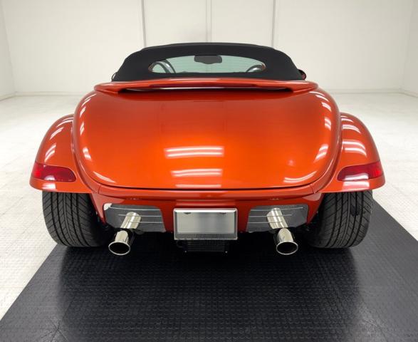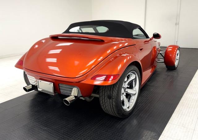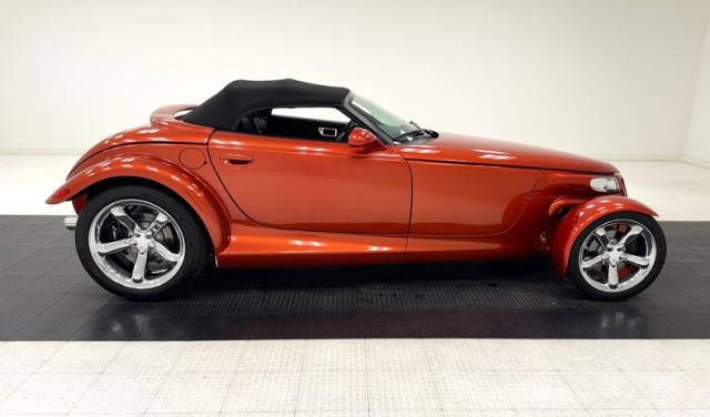 For consignment, a 2001 Plymouth Prowler convertible with a title verified 1,775 actual miles. Of the 11,000 Prowlers built between 1998 and 2002, just 1,039 of them were Prowler Orange and in our house, orange Prowlers peel out of here faster than most of the other 11 colors offered. This car has been personalized with lots of custom parts.