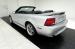 There\'s contrast on the inside as well with Ford\'s Medium Graphite combining with black plastic on the door panels replete with swooping ovals and a carpeted lower insert. Gray leather covers the seats with perforated and tuck and roll inserts, showing some patina on the driver\'s side, a bit less on the passenger side, and almost none on the rear 2+2\'s. A two tone steering wheel leads to an instrument cluster inset in a cove, a symmetrical arrangement of gauges, clean and easy to read. The center stack is also unassuming and efficient, housing the A/C knobs, an AM/FM/6 CD radio, and various switchgear. Things get serious in the center console where the tall shifter rises from a clean black leather boot and the plastic construction of the console includes a pair of cupholders and padded armrest. Nice gray carpet covers the floor, the soft top\'s headliner is in nice shape, and the trunk is lined in gray cloth covered panels and is spotless.