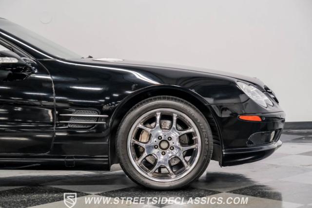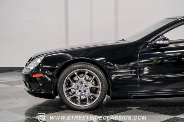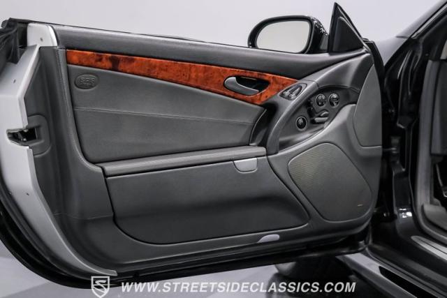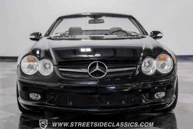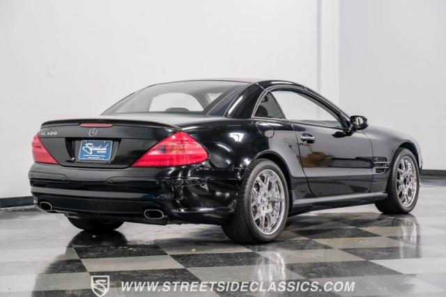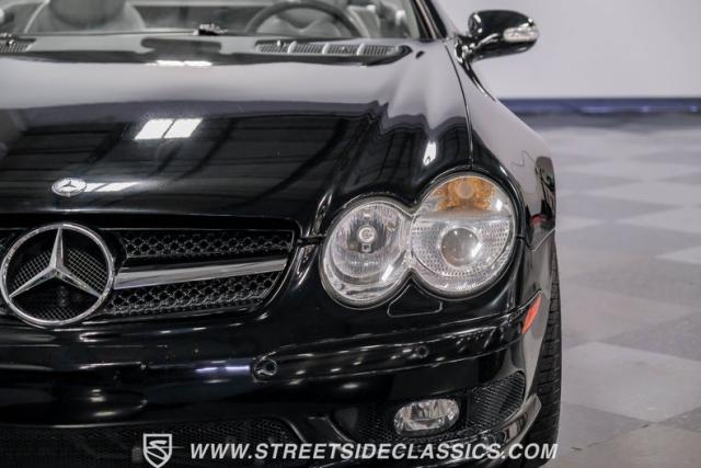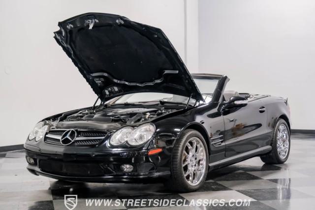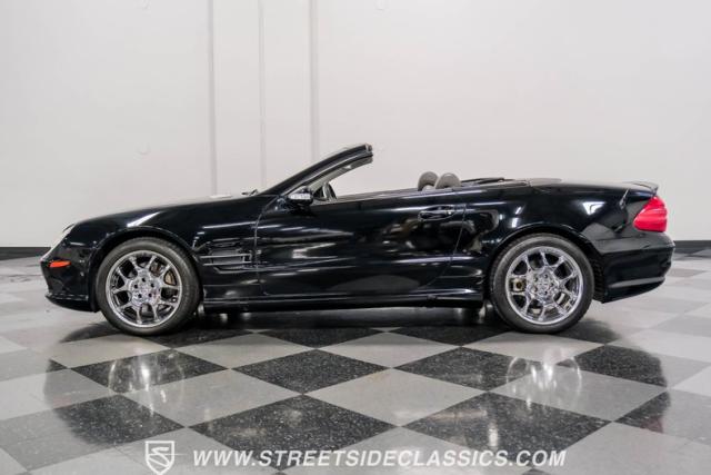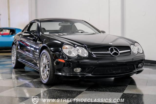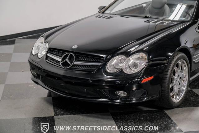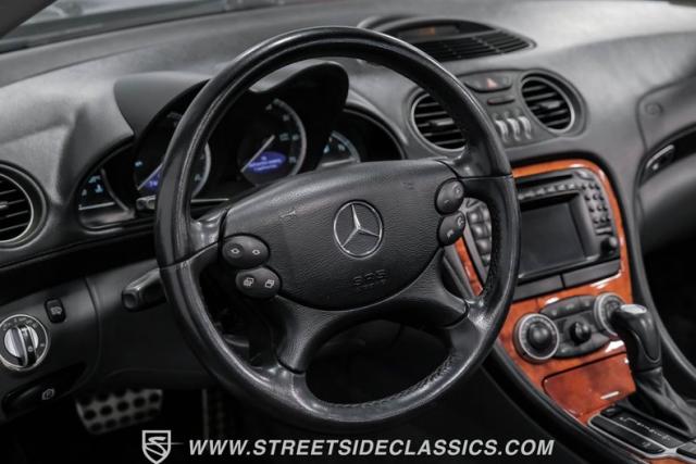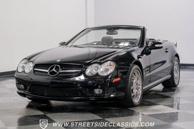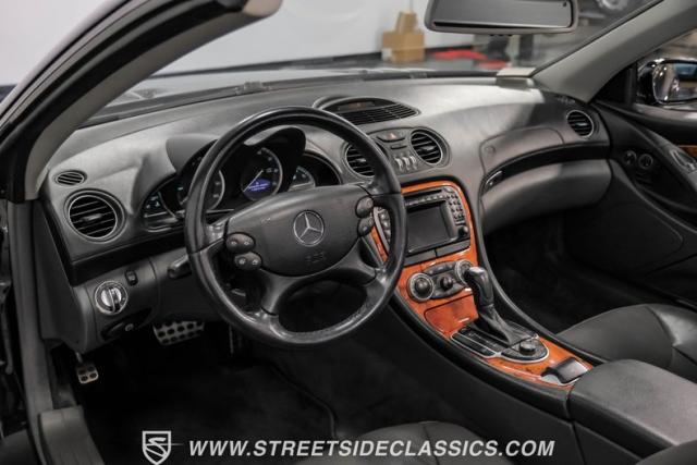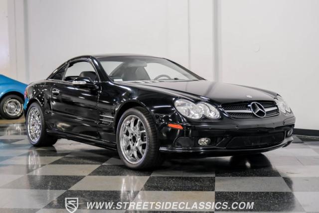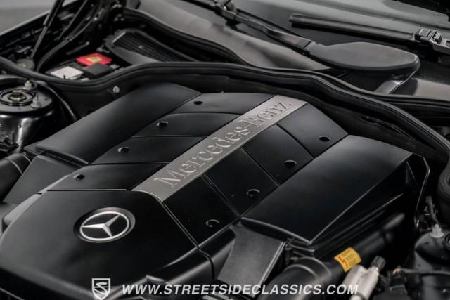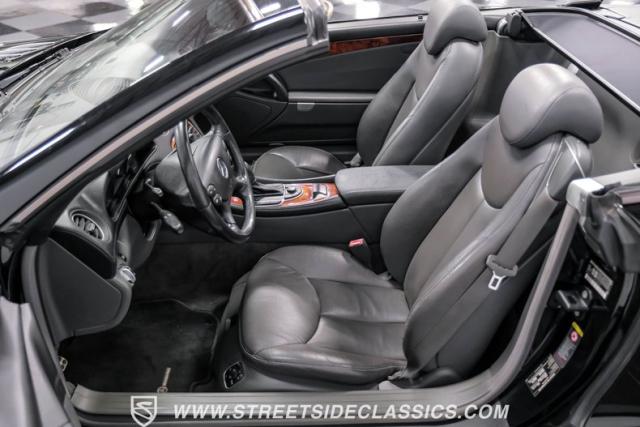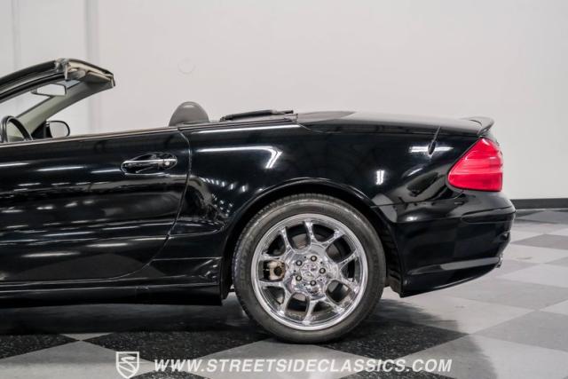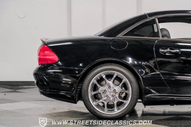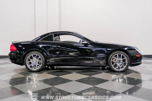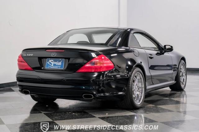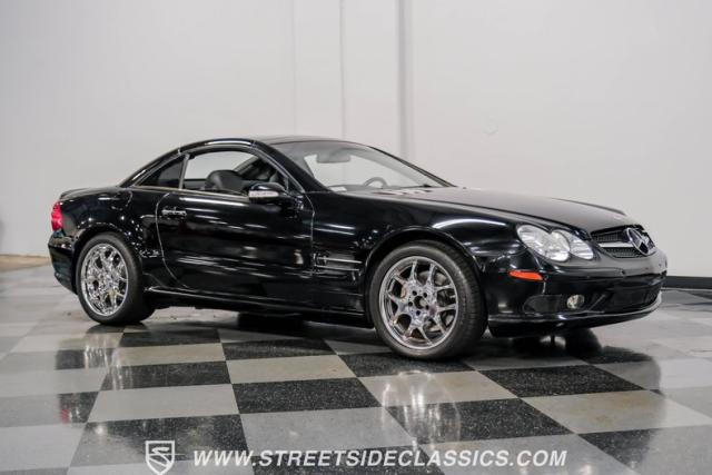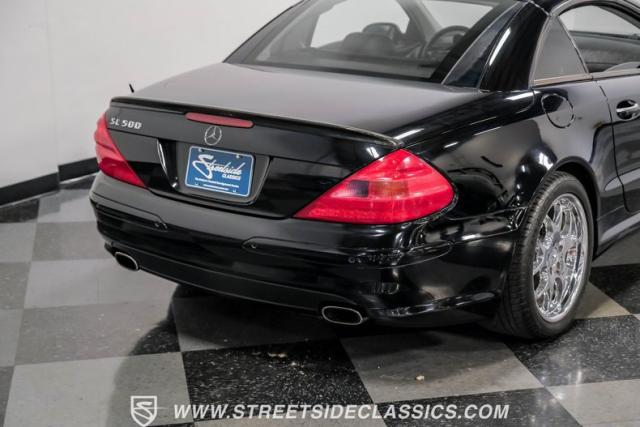 This 2003 Mercedes-Benz SL500 is a symphony of German engineering, where luxury meets performance in perfect harmony. Draped in a sleek black exterior, this retractable hardtop convertible effortlessly transitions from sun-soaked cruiser to sophisticated coupe. The SL500\'s timeless silhouette is enhanced by upgraded 18-inch wheels, a nod to its younger siblings, shod with high-performance 255/40ZR18 front and 285/35ZR18 rear tires. These aren\'t just wheels; they\'re the perfect finishing touch to a design that\'s aged like fine wine.
