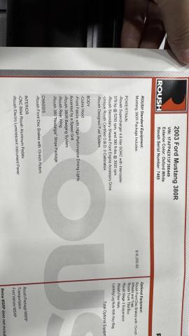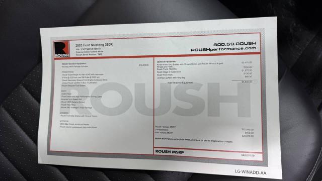This 2003 Ford Mustang Roush 380R coupe is powered by a supercharged 4.6-liter V8 linked with a four-speed automatic transmission, and it was optioned with Roush Stage 3 suspension, Roush-branded front brake calipers, and 18 Roush wheels. Finished in Oxford White with a blue Roush 380 Nostalgia stripe package, the car is equipped with a Cobra hood, a revised front fascia, and a rear spoiler. Inside, Dark Charcoal leather upholstery covers the seats, and features include a power-adjustable driver s seat, a Mach 460 sound system, an in-dash six-disc CD player, a leather-wrapped steering wheel, and air conditioning. The seller purchased the car in 2025 and has since added approximately 150 of the 5k miles. This New Edge Mustang Roush 380R is now offered with a Roush window sticker and a clean Rhode Island title. The car is finished in Oxford White and outfitted with a Cobra hood, a revised front fascia, a rear wing, and a blue Roush 380 Nostalgia stripe package. Roush 18 five-spoke wheels are mounted with Michelin Pilot Sport 4 S tires that were installed in preparation for the sale and measure 265/35 up front and 285/45 out back. The car was optioned with Roush Stage 3 suspension, and the braking system incorporates Roush-branded front calipers as well as cross-drilled and slotted discs at all four corners. The seats are upholstered in Dark Charcoal leather with perforated inserts, and interior appointments include a power-adjustable driver s seat, a Mach 460 sound system, an in-dash six-disc CD player, and air conditioning. An engraved plaque located ahead of the shifter lists engine specifications and the Roush serial number. The leather-wrapped steering wheel frames white-dial instrumentation including a 150-mph speedometer, a Roush-branded 8k-rpm tachometer, and gauges for fuel level, coolant temperature, voltage, and oil pressure. The digital odometer indicates 5k miles. The supercharged and intercooled 4.6-liter SOHC V8 was factory rated at 379 horsepower and 380 lb-ft of torque. A Roush-specific Secondary Sheave Front Engine Accessory Drive, OBDII calibration, and fuel system were also fitted as part of the Stage 3 Package. An oil change was performed in preparation for the sale. Clean & clear title in hand TRADE-INS WELCOME! IF YOU can dream it YOU can do it!! Check out my Test drive Video! MGM Buy it Now price $35,995.00 Financing available $3600 down payment Must have good credit Sales tax/delivery & upgrades can be financed Apply today on our website Text zip code for delivery quote 847-848-1850 All cars are sold in as-is condition Shown by appointment only! WE HAVE OVER 200 CARS IN STOCK! WE OWN OUR INVENTORY! NO CONSIGNMENTS NO INFLATED COMMISSIONS! BUY WITH CONFIDENCE 100% CUSTOMER FEEDBACK OVER 500 (5) STAR REVIEWS! MGM Classic Cars LLC 150 S. Church Street Addison, IL 60101 Mon-Fri 9 am-5 pm Sat 10 am-3 pm www.mgmclassiccars.com