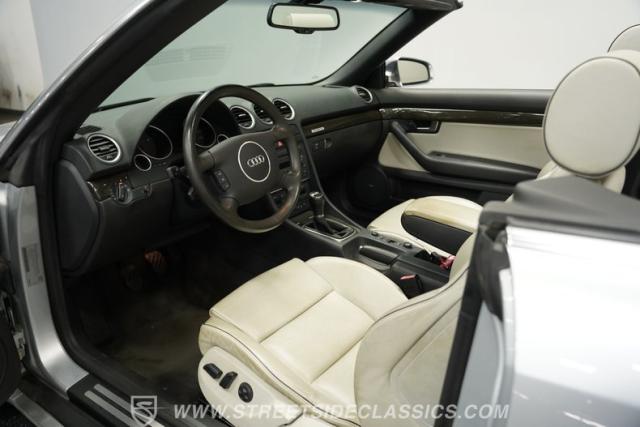 Under the hood, this Audi S4 sports a 4.2-liter V8 engine paired with a 6-speed manual transmission, both likely original and in very good condition. Known for its smooth acceleration and responsive handling, this drivetrain delivers a classic yet thrilling performance. The power steering, four-wheel disc brakes, and fuel injection system work harmoniously to provide confident control and a dynamic driving experience. Recent maintenance includes new tires and a battery, ensuring this convertible is ready for the road with reliability and spirited performance.