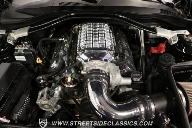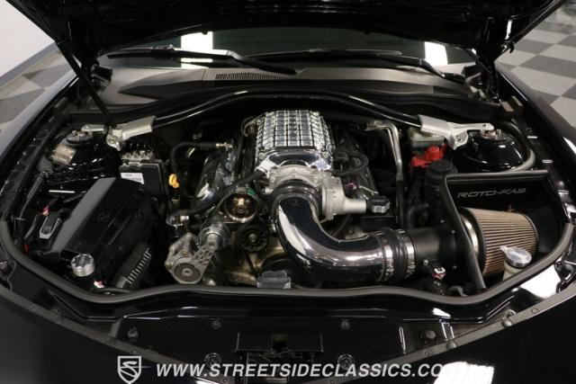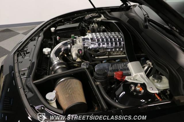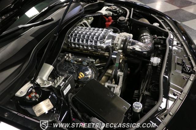 Under the hood lives the 6.2-liter fuel-injected LS3 V8 now topped RCR aluminum heads and an awesome polished supercharger on top. It inhales deeper with a Roto-Fab cold air intake system. And the mighty V8 exhales with authority as headers feed the special free-flow catalytic converters into the dual exhaust and Billy Boat mufflers. The full package is said to make a whopping 720 horsepower! So they upgraded the six-speed manual transmission with a Hurst short throw shifter, twin disc high-performance clutch, and a billet steel flywheel. They have also upgraded the fully independent suspension, including thick PFADT sway bars. And stopping power is upgraded with special RCR four-wheel power disc brakes by Wilwood.