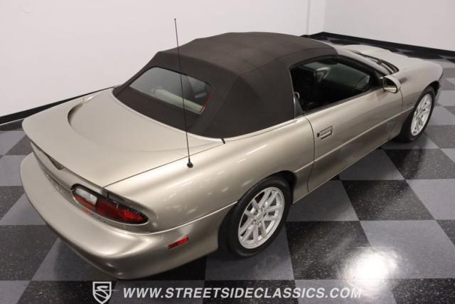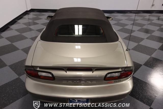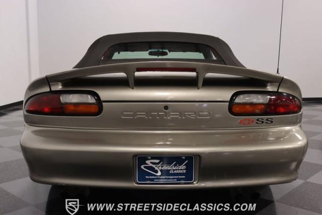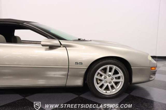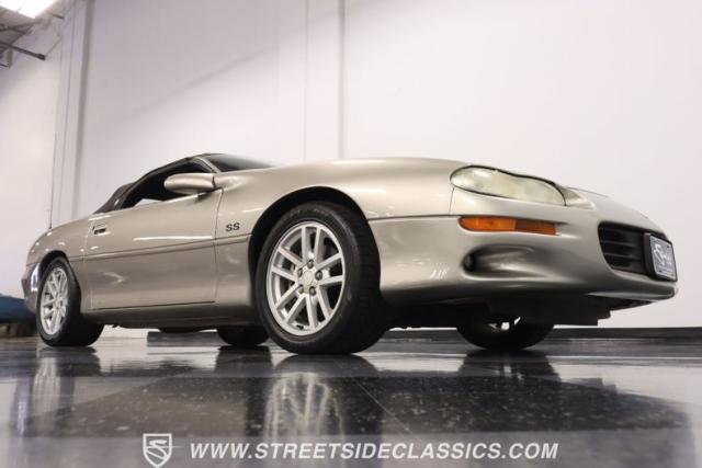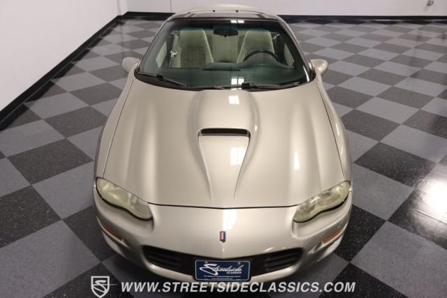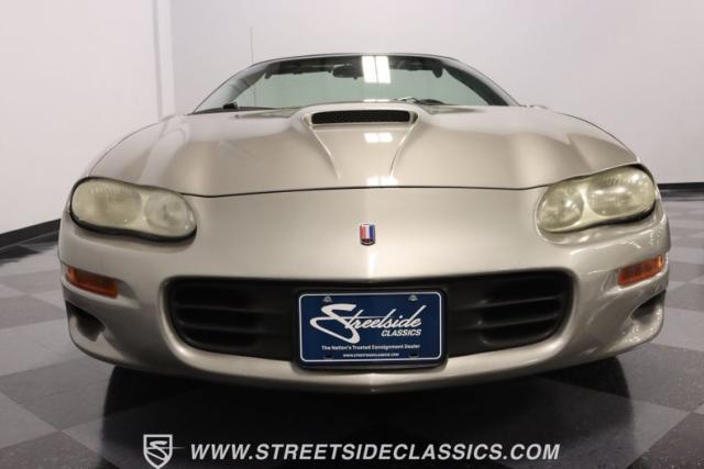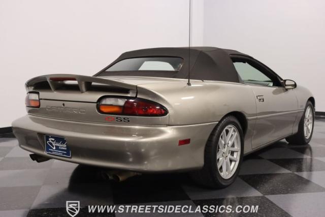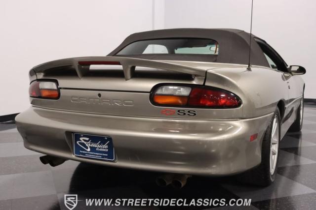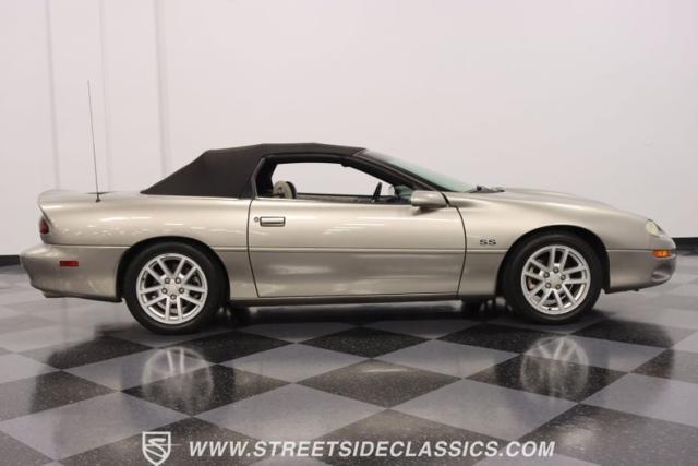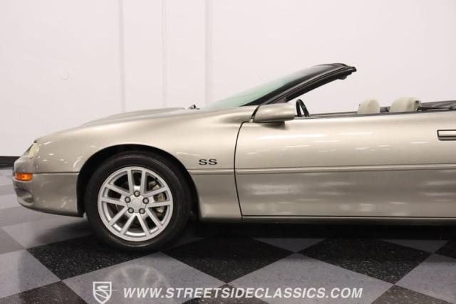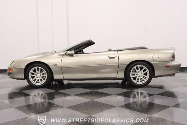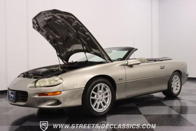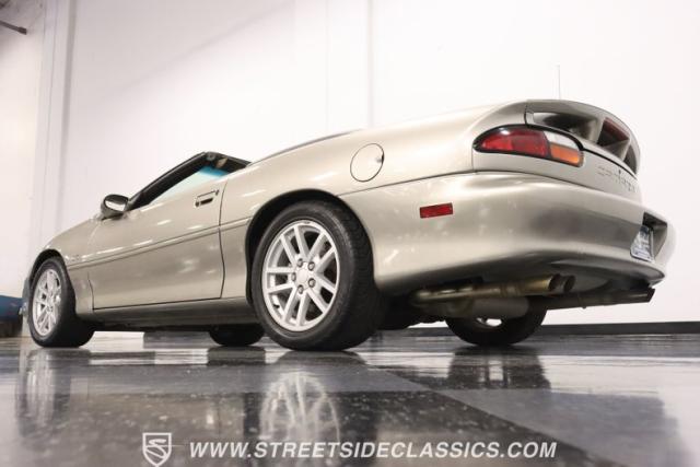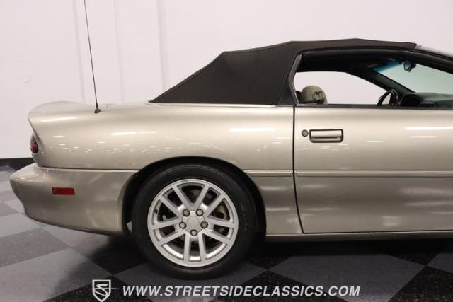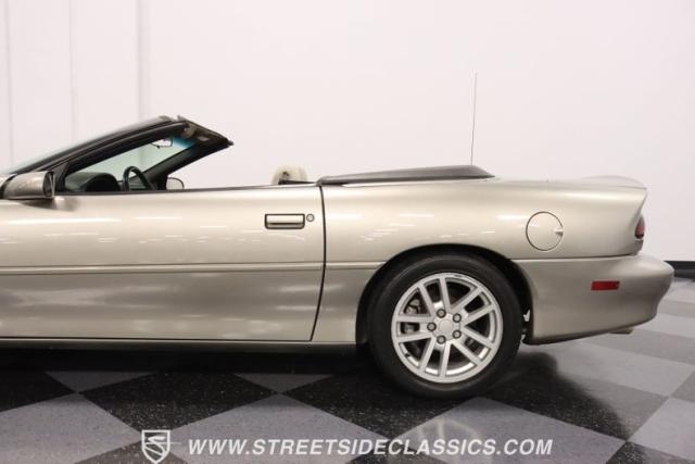 As the final chapter of the 4th generation Camaros and a tribute to its 35th anniversary, this 2002 Chevrolet Camaro Z28 SS Convertible is bathed in Pewter Metallic, its paintwork whispers stories of the open road and the wind in your hair. The car sits proudly on 17\" wheels, with a larger rear spoiler and covered with the sleek black convertible top.