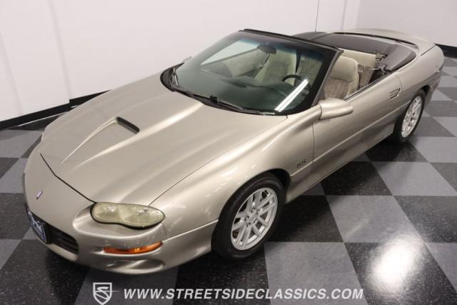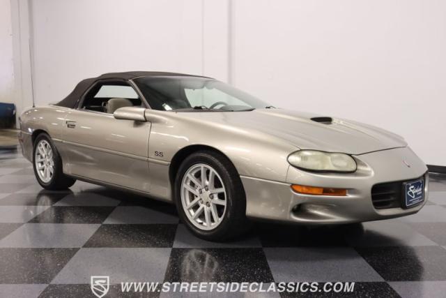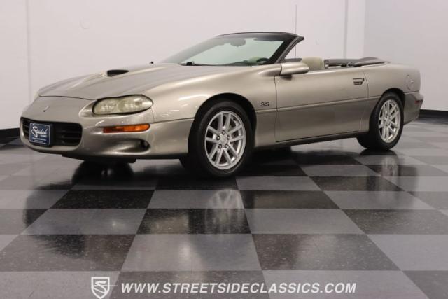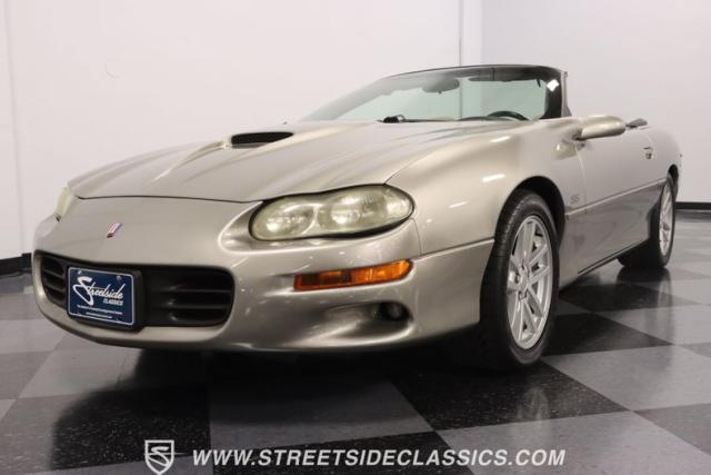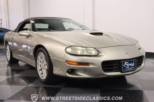 This 2002 Chevrolet Camaro Z28 SS Convertible, a tribute to the end of an era, a celebration of 35 years of Camaro legacy. With its robust 5.7L LS1 engine and a well-preserved gray interior that whispers stories of journeys past. The exterior, with its Pewter Metallic original paint and custom SLP touches, stands as a testament to the enduring allure of the Camaro spirit. Call today!