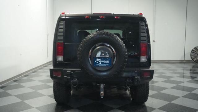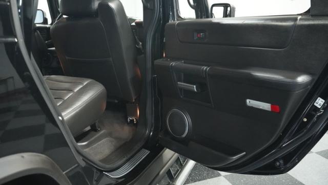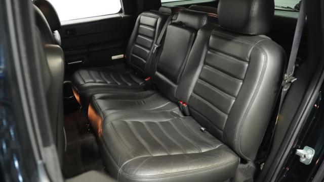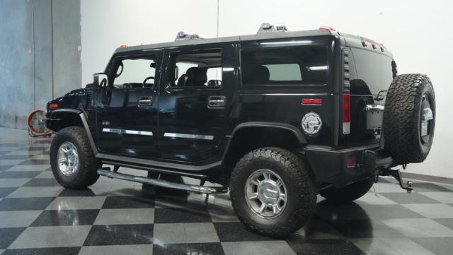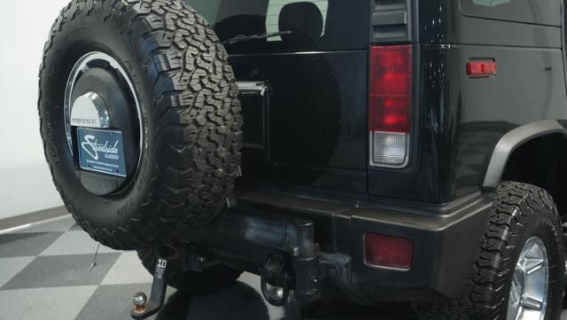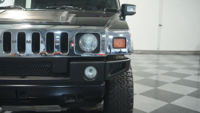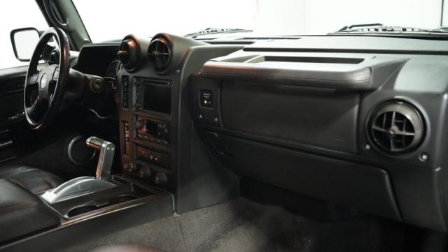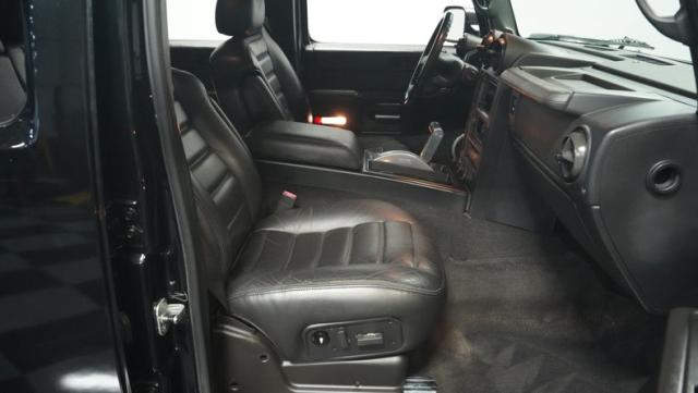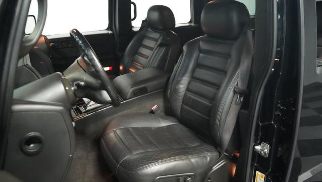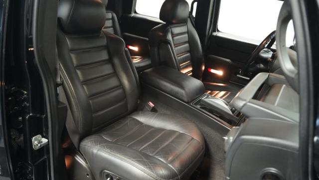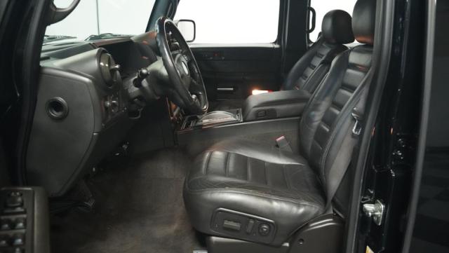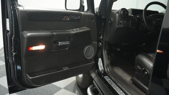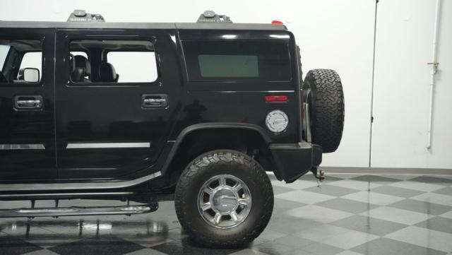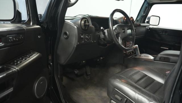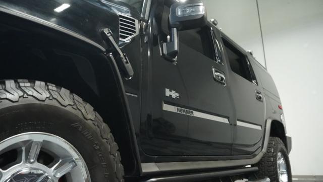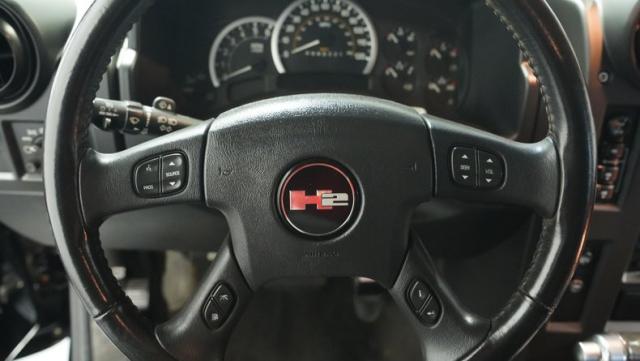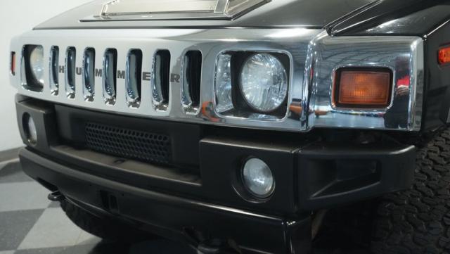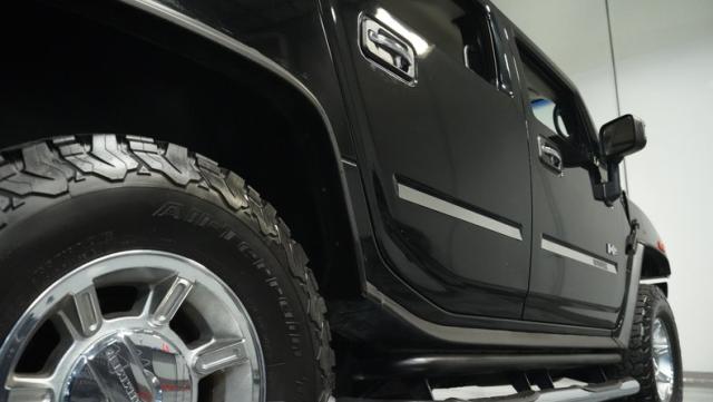 This 2006 Hummer H2 Luxury spent its life with just two owners in the same family - a rare find for these powerful SUVs. The black exterior makes an immediate impact, enhanced by chrome accents and distinctive hood vents. Factory 17-inch wheels wrapped in LT315/70R17 tires provide the perfect stance, while the exterior spare tire carrier adds unmistakable H2 style. The chrome step bars and bright trim complete this bold look.