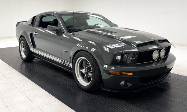 For consignment, a 2006 Ford Mustang GT coupe with a title verified 142,984 actual miles. This one wears a shade of greenish gray paint and a GT stripe that reads GT 300 which likely indicates horsepower.
