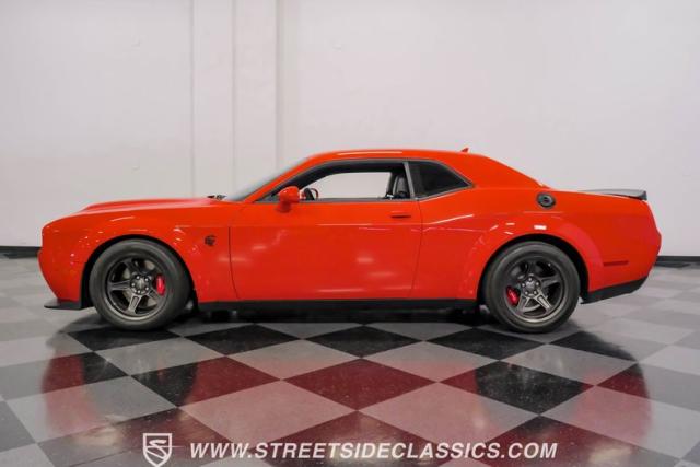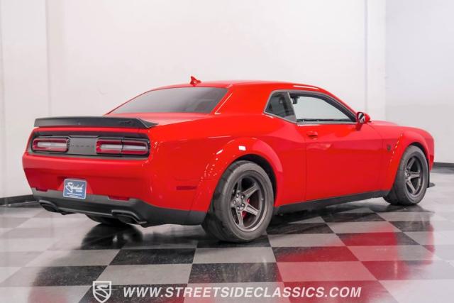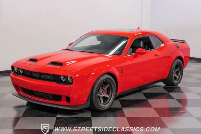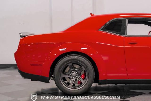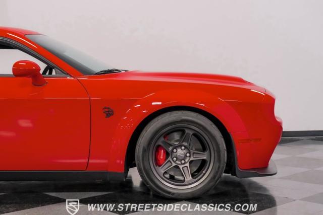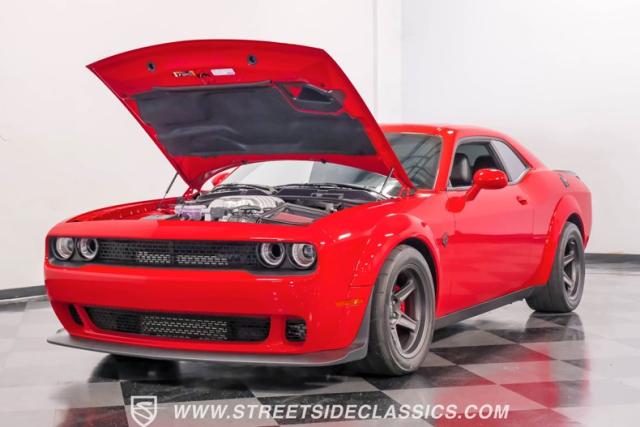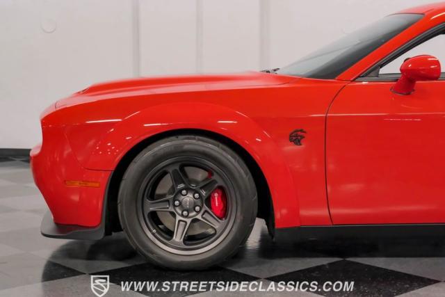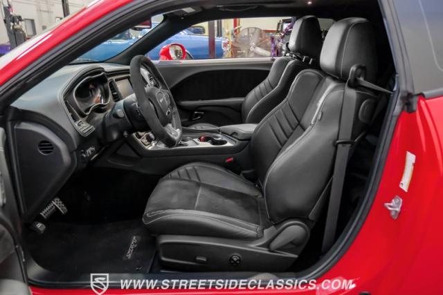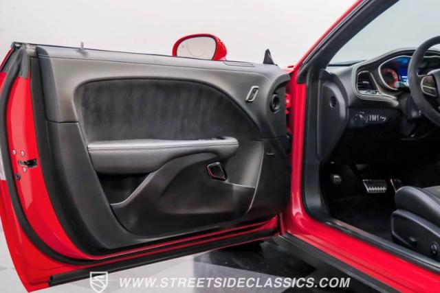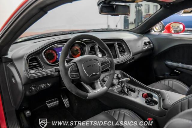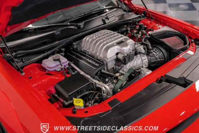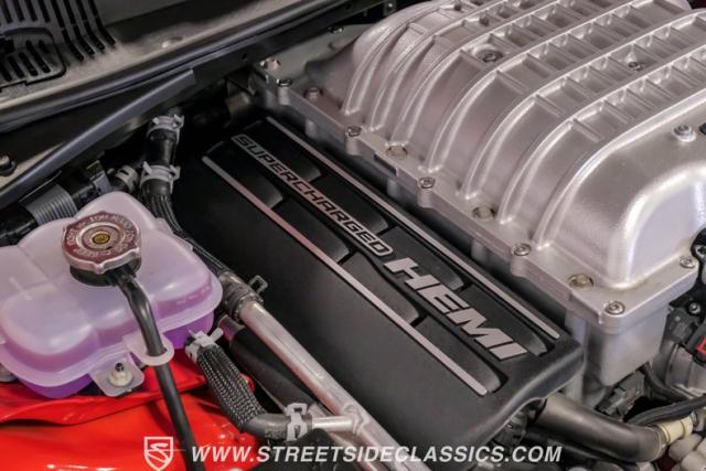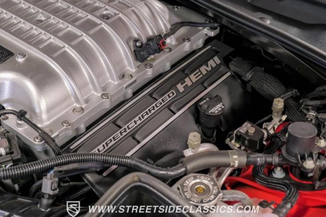 Let\'s talk pure, unadulterated power: 807 tire-shredding horsepower erupts from the 6.2L Supercharged HEMI V8 - matching the legendary Demon\'s output on pump gas. This monumental force flows through an 8-speed automatic transmission engineered to handle such massive output. The Super Stock-specific suspension keeps this powerhouse planted, while gigantic Brembo disc brakes reign in all that muscle. Dual exhaust pipes announce the V8\'s presence with authority. Every component remains factory original, making this ultra-rare Super Stock even more collectible.