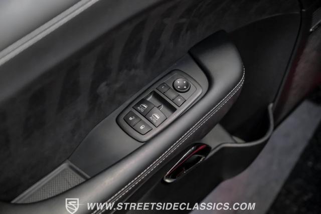 Black leather and suede combine inside this performance-focused cabin. The Alcantara package adds premium materials throughout, while heated and ventilated front bucket seats with driver memory provide exceptional comfort. The 8.4-inch Uconnect touchscreen features navigation and controls the Harman Kardon premium audio system with subwoofer. Power windows, locks, and a backup camera round out the modern amenities, while the floor-mounted shifter gives quick access to all eight gears.
