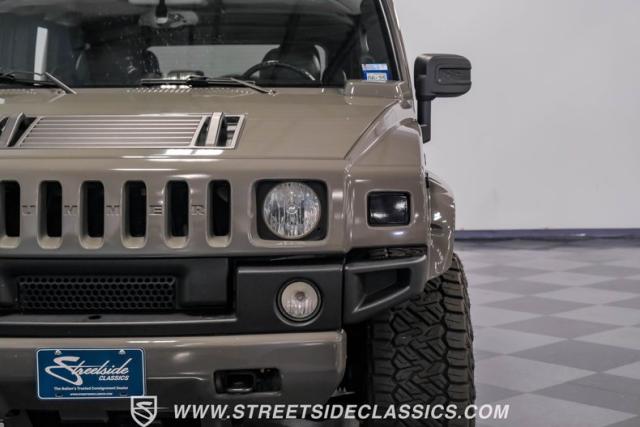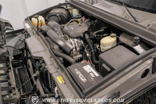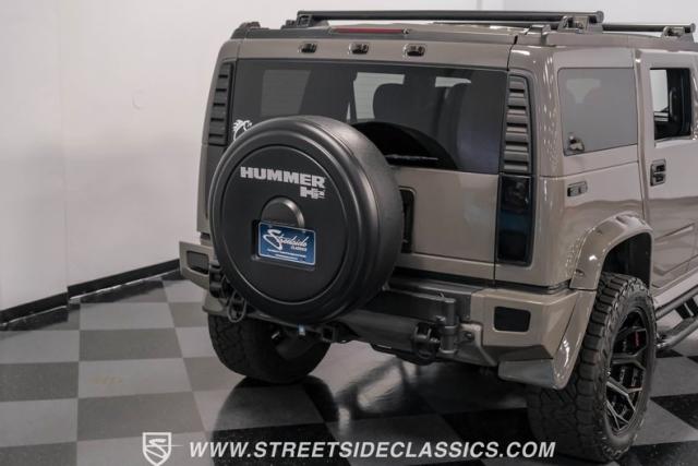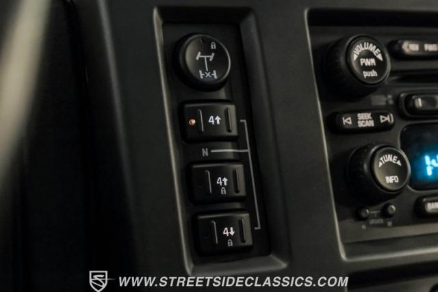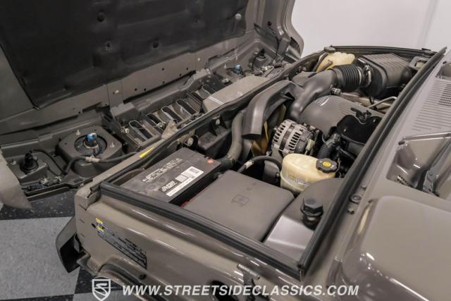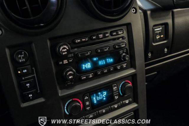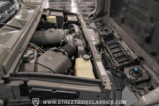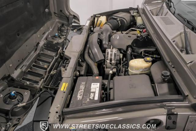 Under the hood, a potent 6.0 Liter V8 engine provides ample power for this off-road titan. Paired with a smooth-shifting 4-speed automatic transmission, this H2 is ready for any terrain. The 4x4 drivetrain ensures superior traction in challenging conditions. Power steering and power disc brakes on all four corners offer precise control and confident stopping power. The engine bay presents a clean, unmodified appearance, preserving the H2\'s original engineering integrity. Suspension components include torsion bars with shocks up front and a solid axle with coil springs and shocks in the rear, complemented by sway bars for improved handling.