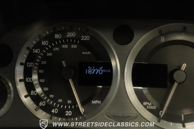 Inside, this Aston envelopes its lucky occupants in a swath of supple Chancellor Red leather. Heated power seats and mirrors, along with power windows and locks provide plenty of modern amenities, while rain-sensing windshield wipers, an AM/FM/CD/AUX/Bluetooth/Navigation infotainment system, and a beautiful analog clock situated midway up the center stack remind both driver and passenger that the lap of luxury can doesn\'t have to stay still.
