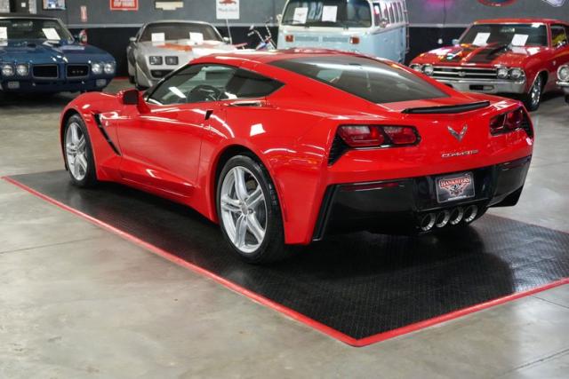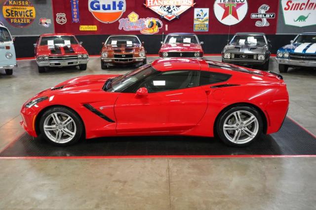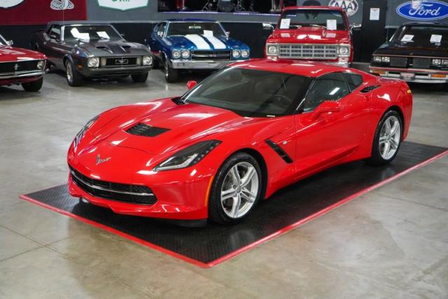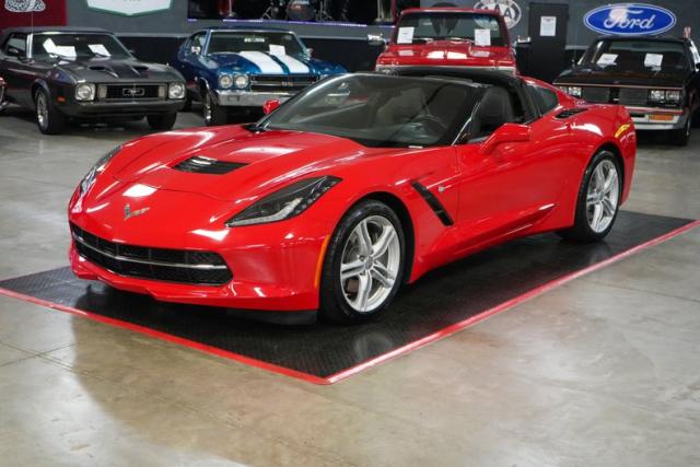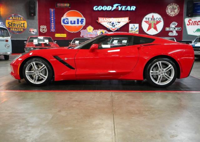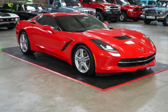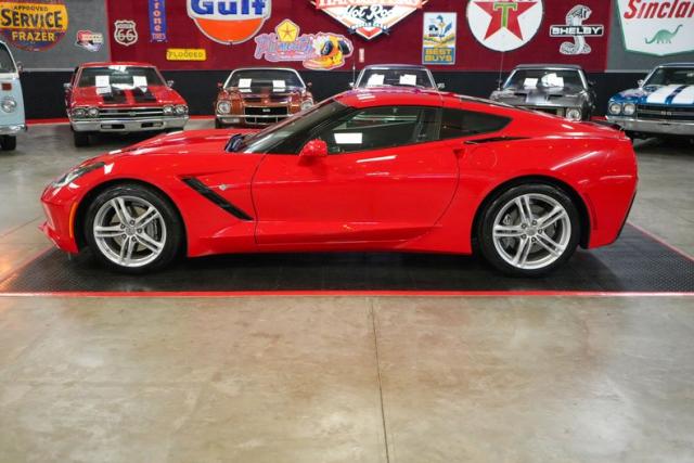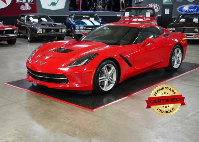 This 2017 Chevrolet Corvette Stingray is a stunning, low-mileage performance car with just 4K original miles and a Clean Carfax. Powered by the 6.2L LT1 V8 paired with an 8L90 8-speed automatic with paddle shifters, it delivers precise shifts and exhilarating acceleration through a limited slip differential and 2.41 gears. Finished in vibrant red over black leather, it features a removable roof, dual climate control, navigation, Bose premium audio, and Apple CarPlay/Android Auto. Riding on staggered OEM wheels with Michelin Pilot Sport tires and equipped with Brembo brakes, this Stingray blends modern technology with iconic Corvette performance. THIS VEHICLE QUALIFIES FOR FREE SHIPPING AND A WARRANTY!!