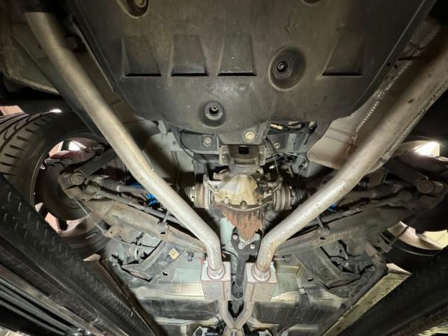 Up on the lift some slight surface rust but all structurally sound with the unibody construction. All independent suspension, and all power disc brakes all around for this car. Adjustable coilovers are in front, and lowering springs are in back. Noted, there is still a noticeable bend in the left front unibody rail near the radiator support (see photos 68 and 69).