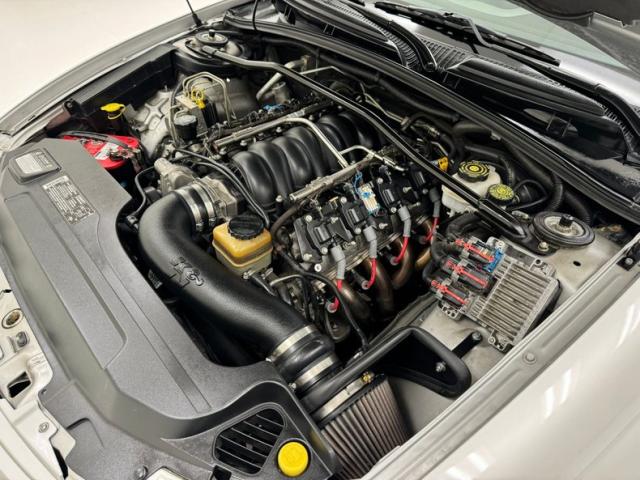 Stuffed under the curved dual vented hood is a living breathing 6.0 liters of V8 LS2 engine. It has a Texas Speed camshaft with 629i, 615e lift, and 235i,240e duration and a K&N cold air intake. EFI feeds it, and a T56 6-speed manual transmission with a rear axle with 4.11 gearing finishes up the drivetrain. Headers and a Spintech muffler system are on and it has QTP electric cutouts.