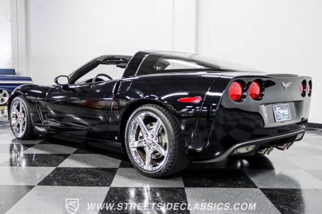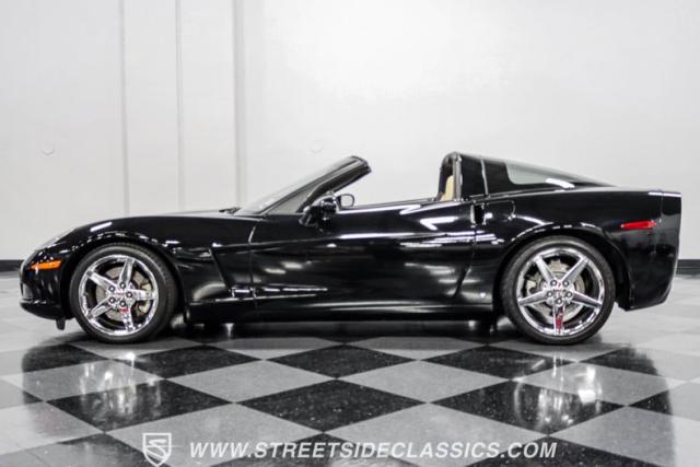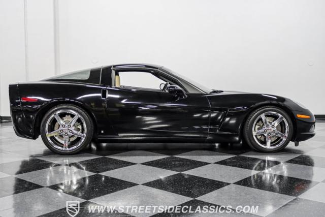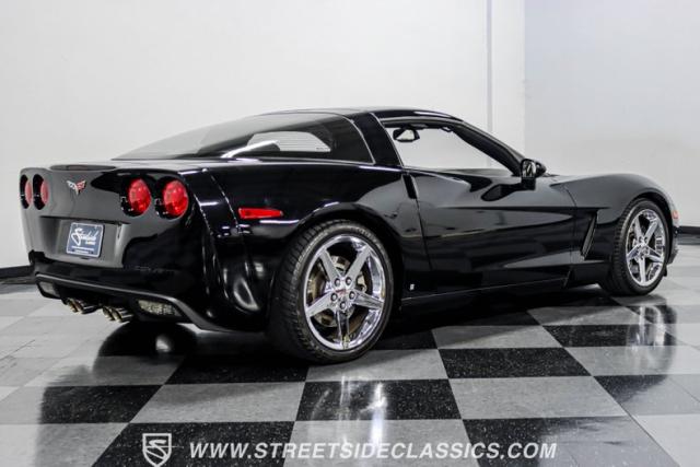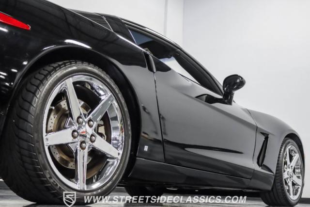 This 2007 Chevrolet Corvette 3LT Coupe boasts a removable targa roof panel, giving you the best of both worlds - coupe security and open-air freedom. Draped in sleek black paint, this American sports car icon cuts a striking figure on the road. The aggressive stance is amplified by staggered wheel sizes - 18\" up front and 19\" in the rear, wrapped in 245/40R18 front and 285/35ZR19 rear tires. This combination not only looks great but also provides excellent traction and handling characteristics.