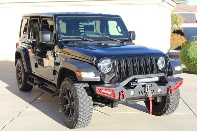 2021 jeep wrangler willys,4x4 with 4 cly turbo270 hp,4xe hybrid with charger 64400 miles,great performance and gas mileage of 24-28 mpg,this black on gray jeep is loaded with options,power steering,power brakes,power windows,cruise control,keylwss entry alarm,anti lock 4 wheel disc brakes,heated mirrors,rear defoster,am-fm satelite radio,air conditioning,automatic headlights,fog lamps,heated steering wheel,automatic headlights,keyless start,tilt steering wheel,floor mats,privicy glass,leather steering wheel,fog lamps,mp3 player,rear camera,heated front seats,alarm,roll bar,8 speed automatic transmission,engine immoblizer,steering wheel contols,on board computer,led headlights,spare tire on carrier,over $50000 new,extras are glass removable top,rubber floor mats,door edge guards,custom running boards,paint protective coating,ust added a custom front bumper with led lights and a 2500 remote control winch $1000 never smoked in,no accidents with clean auto check report,never smoked in,priced at $28995 may trade,im a dealer collector in phoenix arizona,i have been in business for 58 years,buy with confidence,i buy,sell,trade,offer inspections and shipping.i have porsche,jeep,bentley,corvettes,gto,muscle cars,street rods,pro tour 50s pick ups,trucks,trailers,audi and more see 50 to 100 photos at www.classicsportsandtrucks.net,calls only no texting or emails till we talk first,to many scammers,i will block you no exceptions,price $28995 i also have a 2024 wrangler willys 4xe hybrid 2700 mi see last photo,call 602-820-7395