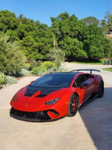 2018 Lamborghini Huracan Performante wrapped in Satin Red (original color is Rosso Mars Exterior). The interior features Nero Cosmus Alcantara with the Laser-Engraved Package and Rosso Contrast Stitching. The Performante is powered by a 5.2L naturally aspirated V10 and features the Lamborghini Doppia Frizione (LDS) 7-speed Dual Clutch Transmission. Full service just done in May 2022.-Loge 20\' Forged Black Wheels-Navigation System (NAR)-Lifting System-Dynamic Power Steering - Custom half steering but have the original in stock as well.- Contrast Red Stitching-Laser Engraved Package-Bluetooth Hands-Free Streaming-Performante Interior-Park Assist with Front and Rear Sensors-Branding Package-Anti Theft System. Salvage title. Please Note The Following **Vehicle Location is at our clients home and Not In Cadillac, Michigan. **We do have a showroom with about 25 cars that is by appointment only **Please Call First and talk to one of our reps at 231-468-2809 EXT 1 ** FREE Consignment Visit Our Site Today Easy To List Your Vehicle and Get it Sold in Record Time.