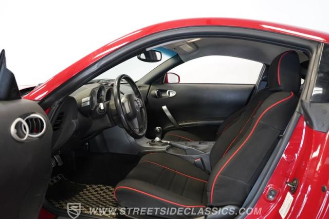 Under the hood, this 350Z boasts a 3.5-liter DOHC EFI engine paired with a smooth-shifting 6-speed manual transmission, offering strong performance and precise control. The power steering and factory-upgraded Brembo power disc brakes ensure confident handling and stopping power. Equipped with factory-style 18-inch Nissan forged wheels wrapped in Champiro UHP tires, this vehicle maintains excellent road grip and balance. The suspension and drivetrain remain true to the car\'s original design, delivering a fun, responsive ride.
