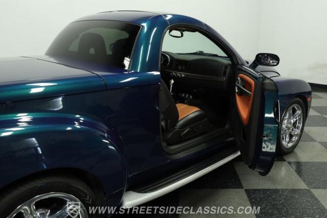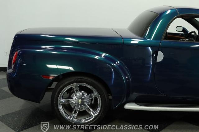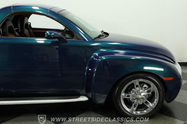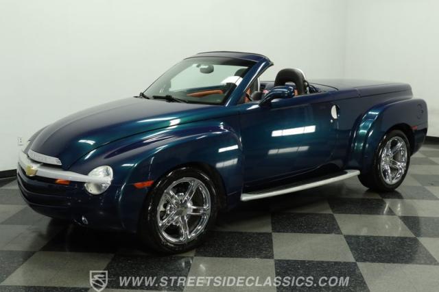 If you\'re looking for a great-looking, fun, fast, and uncommon vehicle that also happens to be relatively practical, take a look at this 2005 Chevrolet SSR. Decked out in what is believed to be its original Aqua Blur Metallic paint, this muscle truck has just 76,735 actual miles on its odometer. Add to that the SSR\'s retractable hardtop, and you have a vehicle that will turn heads everywhere it goes.