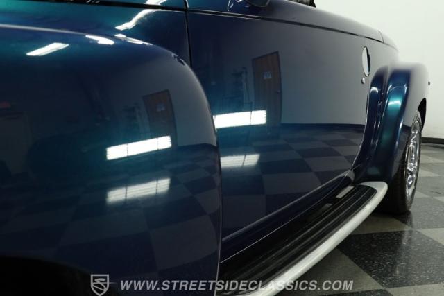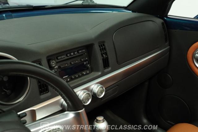 Inside, we find a host of modern amenities that old-school hot rods can only dream of. A black leather interior with custom tan seat covers and door panels create a cool and unique two-tone effect. Featuring dual power leather seats, power windows, locks, and mirrors, along with an AM/FM/CD head unit, this cockpit creates a warm and comfortable cabin with or without the wind blowing through your hair. A power bed cover release, air-conditioning, cruise control, and a center console highlighted by a three-pod auxiliary gauge cluster all serve to make road trips of any distance overwhelmingly enjoyable.