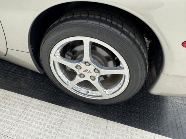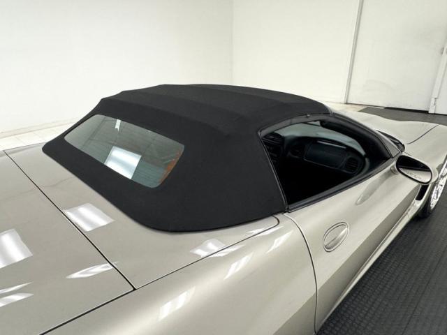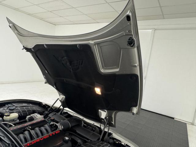 Vettes look great in just about any color and Light Pewter Metallic is no exception with this one has been pampered and the body and paint remain in excellent condition 25 years later. The dramatic wedge shape is not lost to observers even when the top is up as the contrasting black canvas never disrupts the rising shoulder line of the sports car and the color combo gets a chef\'s kiss every time. Then of course, you have the chrome 5 spoke wheels, looking as sporty as you can get and staggered with 17-inch fronts and 18-inch rears carrying staggered size low profile tires. The fender gill defines the body contour on the side, a nod to the Corvette legacy once occupied by a colored coved. Out back, center exit quad exhaust is an epic feature while some minor chin scrapes make our notes as the only exterior imperfections.