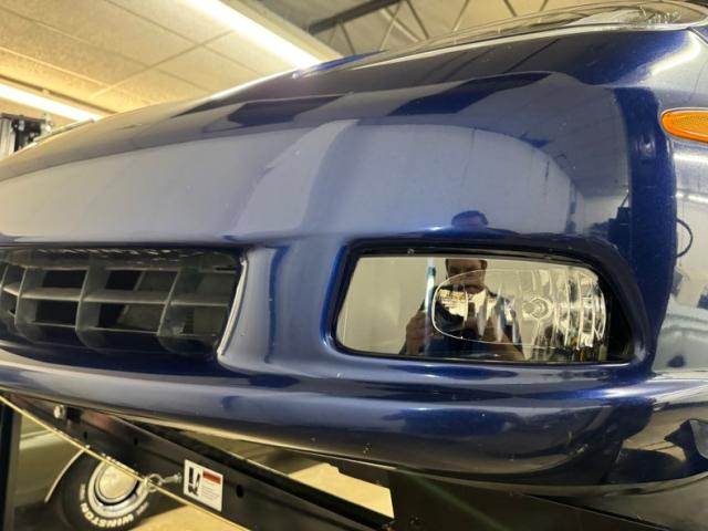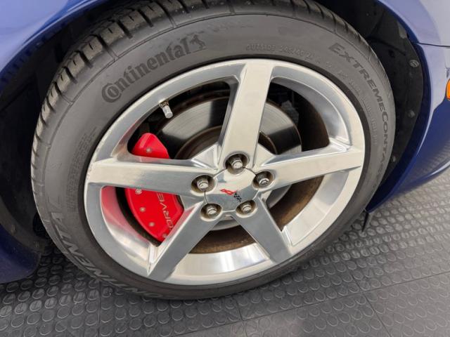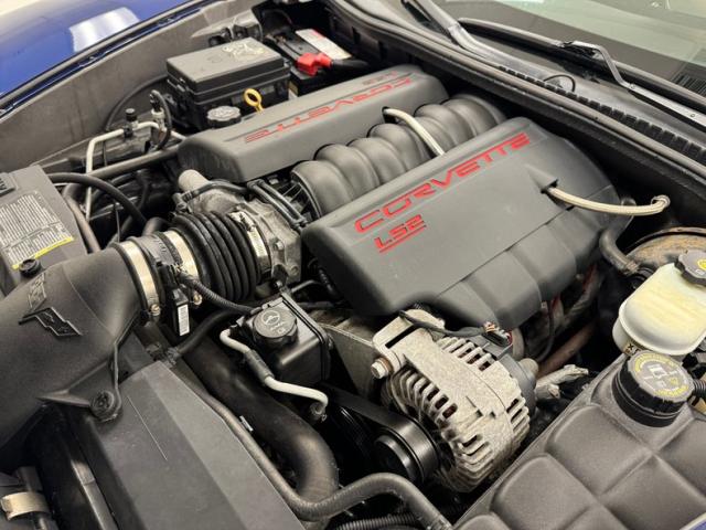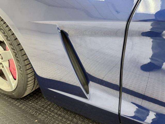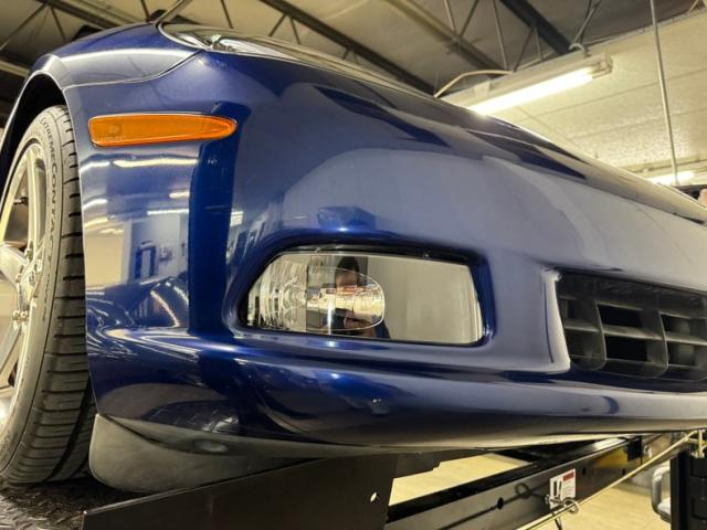 For the C6, Chevrolet decided to have fixed headlights rather than historically hidden units, and like many generational changes, it was met with polarizing reactions. But over time, people began to favor it, and it certainly eliminated one potential problem. Our wedge shaped beauty is ready to show and go in that fantastic coat of two stage LeMans Blue Metallic paint and it\'s the five spoke wheels, 18-inch in front and 19-inch in back, that create some appealing contrast with red covers on the calipers add to the pizazz. In back, the clean tail houses the iconic quad tail light and center exit exhaust also come in a set of four, flanked by a valance that takes in the sizable reverse lenses. Door handles are inset into a cove on the body and the fender vents provide the character lines along the side. Imperfections here include some rock chips on the hood and nose piece, various small chips and inclusions, and the inevitable chin scrapes.