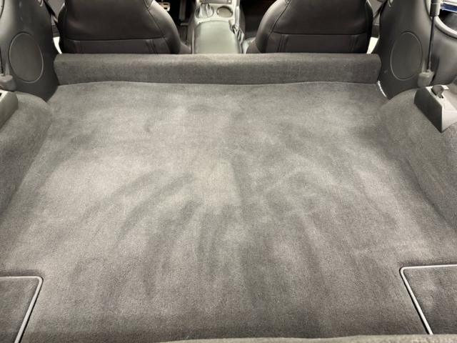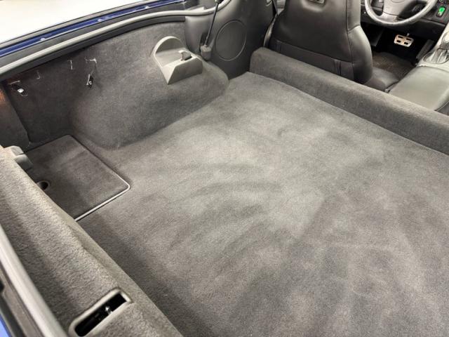 63% of \'07 coupes came with an Ebony interior and this one of them, beginning with the smartly designed door panels made mostly of textured plastics. From there, we note the leather bucket seats, nicely padded and showing some wear and compression on the driver\'s side. Our leather wrapped steering wheel shows some use as well but is fully intact and fronts the unassuming sports car instrument cluster with stylistic overlapping gauges and bright red needles. Aluminum colored plastic serves as the faceplate for the center stack where we find a simple integrated AM/FM/CD player and climate control panel. That faceplate cascades down seamlessly into the center console where the leather booted shifter awaits, all in nice condition. Clean charcoal carpet is below and in the cargo area and a translucent removable targa roof is overhead.